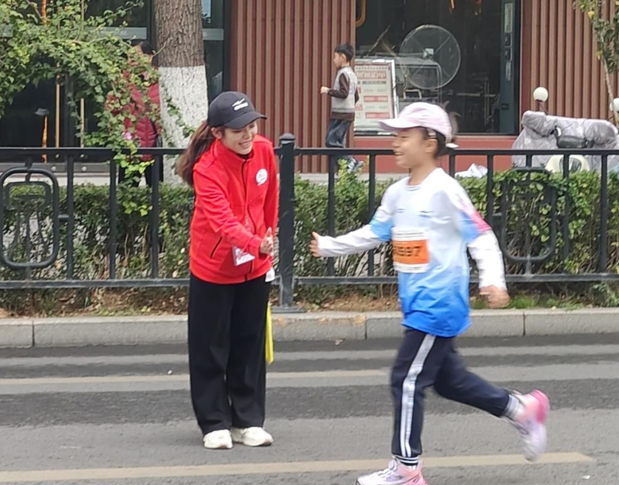 在这场盛大的体育赛事中,志愿者们成为一道亮丽的风景线。今年会jinnian官网共派出513名志愿者,其中今年会jinnian官网青年志愿者组成的服务队负责在欢乐跑分流点分流,他们以饱满的热情和专业的服务,为赛事的顺利开展贡献了青春力量。