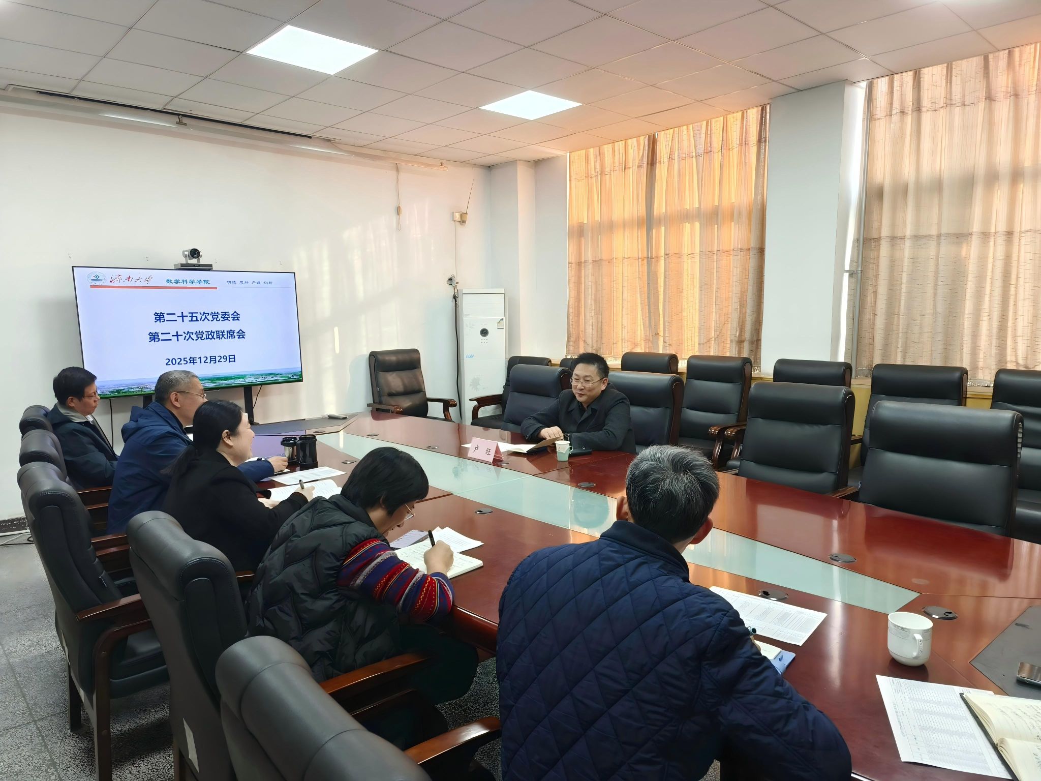 学院党委会严格落实“第一议题”制度,专题学习了习近平总书记在中共中央政治局民主生活会上的重要讲话精神。会议研究了2025年学院意识形态工作责任制落实情况、2025届和2026届毕业生就业工作推进情况。党政联席会审议了2026届校级优秀毕业生推荐名单,研究学院近期学术报告安排、学院“十四五”规划总结与“十五五”规划编制工作等议题。