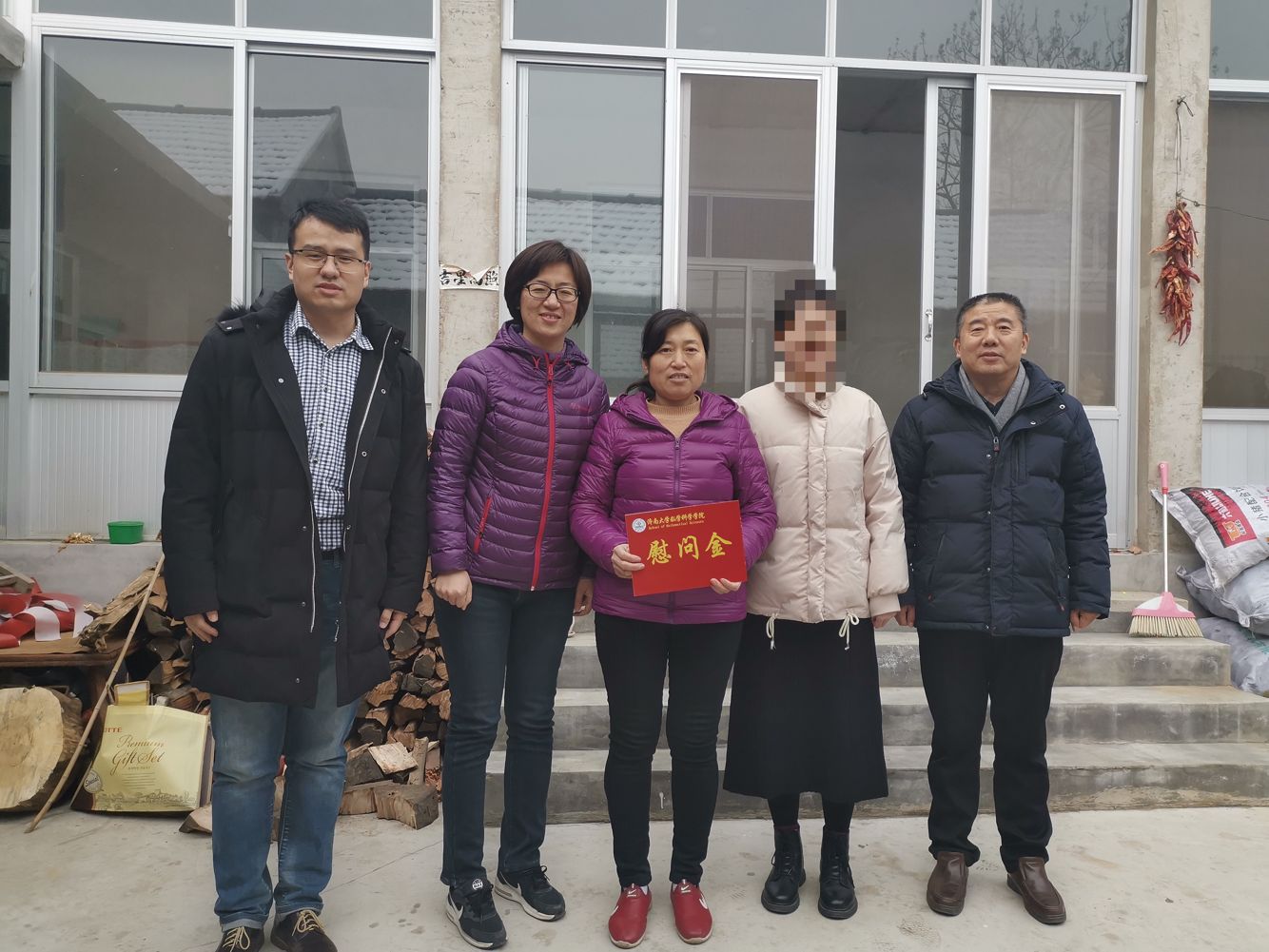 1月11日上午,今年会官网正式启动了2020年辅导员家访工作。学校党委张硕秋副书记一行11人赴邹平市青阳镇看望慰问了今年会官网家庭经济困难学生小欣。学校党委学生工作部(处)部(处)长贾海宁、副部(处)长刘芝、计划财务处副处长王秀清,今年会jinnian官网党委书记侯启海,今年会jinnian官网党委副书记、副院长张沂红一同参加。小欣家位于邹平市青阳镇代家庄村,小时候因为车祸她失去了父母,现在和弟弟一起跟年近八十的爷爷奶奶生活,虽然有政府的救济和亲戚们的帮助,家庭经济状况十分困难。三间简陋的房屋,就是他们4口人生活的地方。家访队伍的到来使这个平凡的农家小院顿时热闹了起来,小欣爷爷奶奶热情地招呼张书记和其他老师在屋里坐下,老师们与小欣爷爷奶奶亲切地攀谈起来。张硕秋副书记十分关心小欣一家的生活情况,详细询问了两位老人的身体状况和过年准备的情况,并劝慰老人一定要对未来生活充满信心。当得知小欣弟弟学校和小欣一样刻苦时,张硕秋副书记非常开心,鼓励小欣弟弟一定要更加努力学习,长大后要有大出息。张硕秋副书记特别关心小欣未来发展规划,“结合你的专业所学和个人兴趣,可以选择继续学习,也可以选择做老师,但是一定要努力”,张硕秋副书记殷殷嘱托的话语感动了小欣一家。面对生活的不幸和磨难,小欣开朗乐观的生活态度感染了大家,当得知小欣在校期间不仅学习努力,还积极参加学校活动时,老师们感觉非常的欣慰。