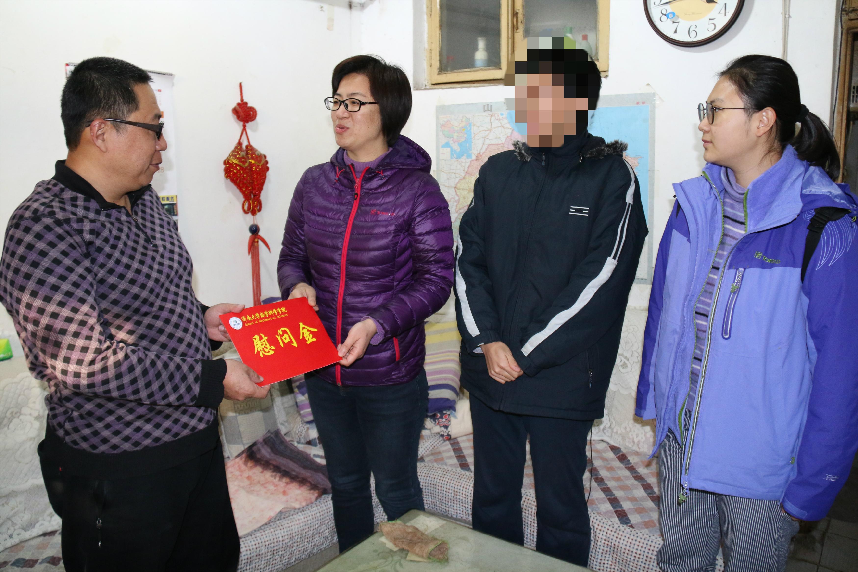 为深入贯彻落实党的十九届四中全会精神、全国教育大会、全国全省高校思想政治工作会议精神,紧紧围绕“立德树人”根本任务,牢固树立“以学生为本,关注两个比例、实现两个更多”的育人理念,同时也为加强学校对学生家庭情况和生活环境的进一步了解,增强家校之间的交流与沟通,促进学生健康全面的发展,根据学校《关于开展2020年寒假辅导员家访活动的通知》的要求,1月11日-15日,今年会jinnian官网赴济南、滨州、日照、泰安四市看望慰问了今年会官网14位家庭经济困难学生,学校党委常委、副书记张硕秋走访慰问了今年会官网贫困学生家庭,学校纪委、计划财务处、今年会jinnian官网相关领导参加,今年会jinnian官网全体学工人员参与其中。