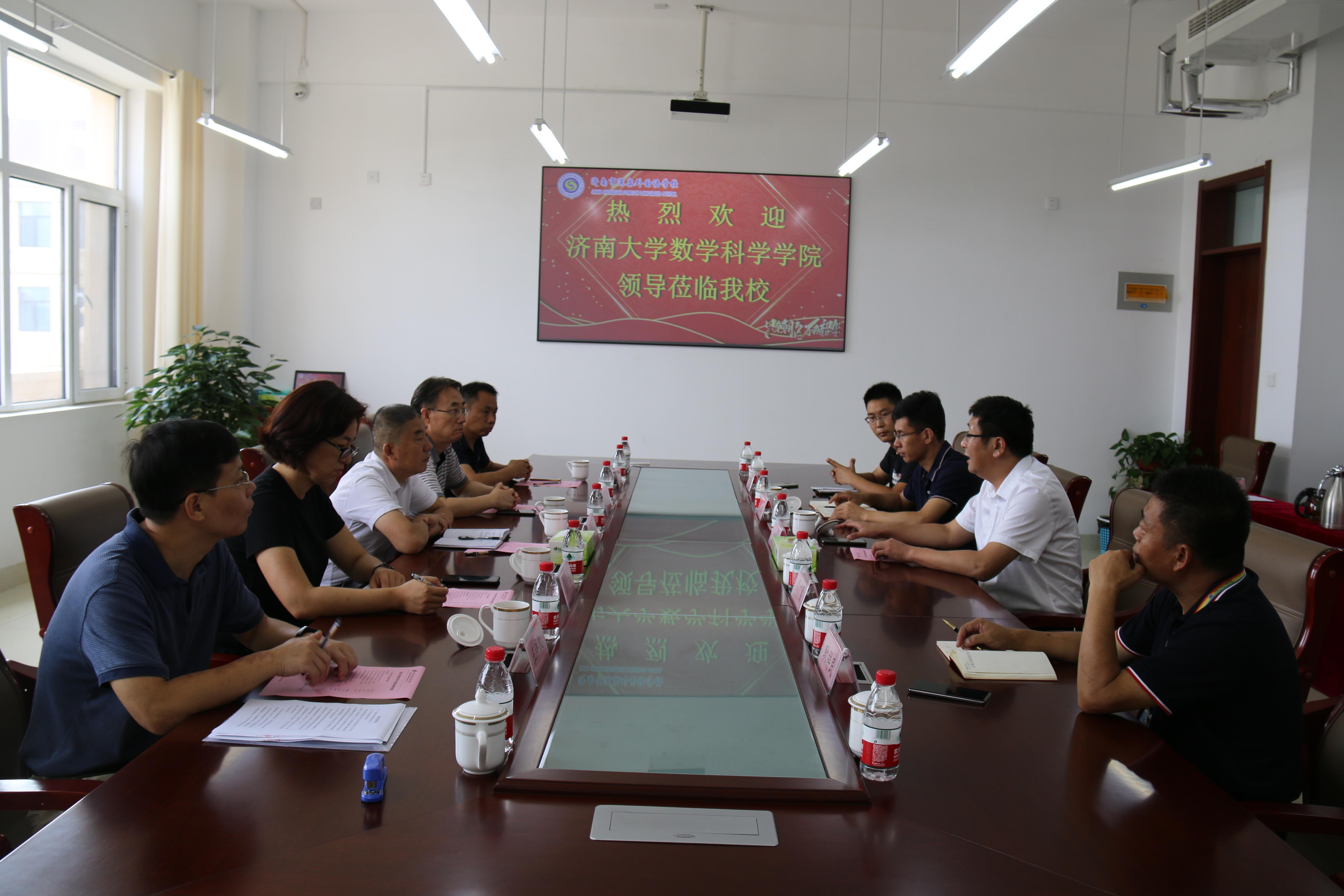 山东锦泽实业集团总经理黄路颖对今年会jinnian官网一行到访表示欢迎,详细介绍了山东锦泽实业集团及旗下济南市深泉外国语学校、山东深泉问道网络科技有限公司的基本情况。学院党委书记侯启海对山东锦泽实业集团、济南市深泉外国语学校、山东深泉问道网络科技有限公司的热情接待表示感谢,高度赞扬了济南市深泉外国语学校在基础设施建设、校园文化培育、师资队伍建设、对外合作交流方面所取得的成绩,表达了就学生实习就业、对外合作交流等方面进行深度合作的愿望。学院院长管延勇详细介绍了今年会jinnian官网的发展历程、学科概况、人才培养以及教育教学实践基地建设情况,希望进一步加强多层次人才工作的探讨与交流。