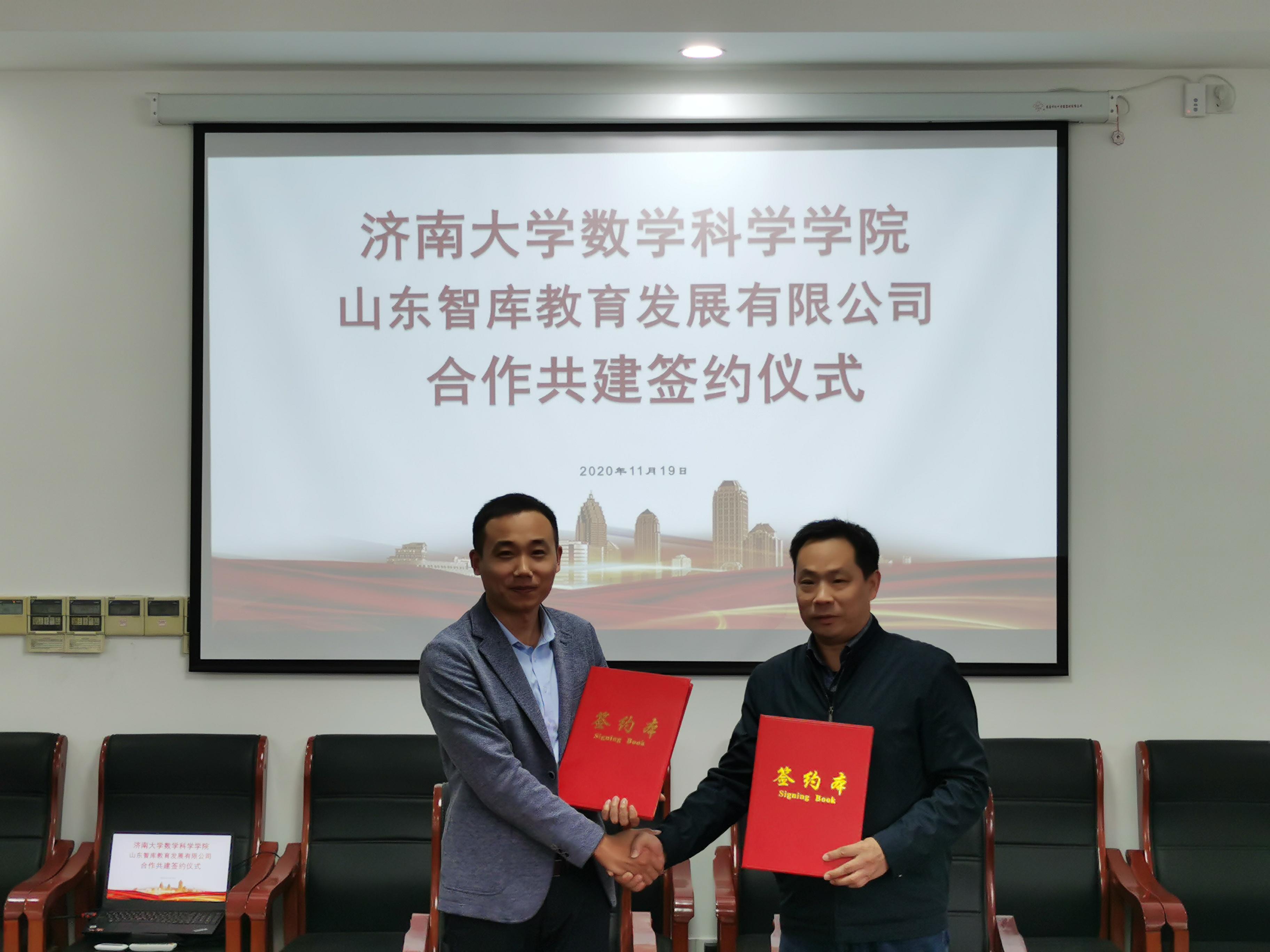 随后,学院副院长王纪辉、山东智库教育发展有限公司副总经理张士超代表双方签署了校地合作共建协议书。