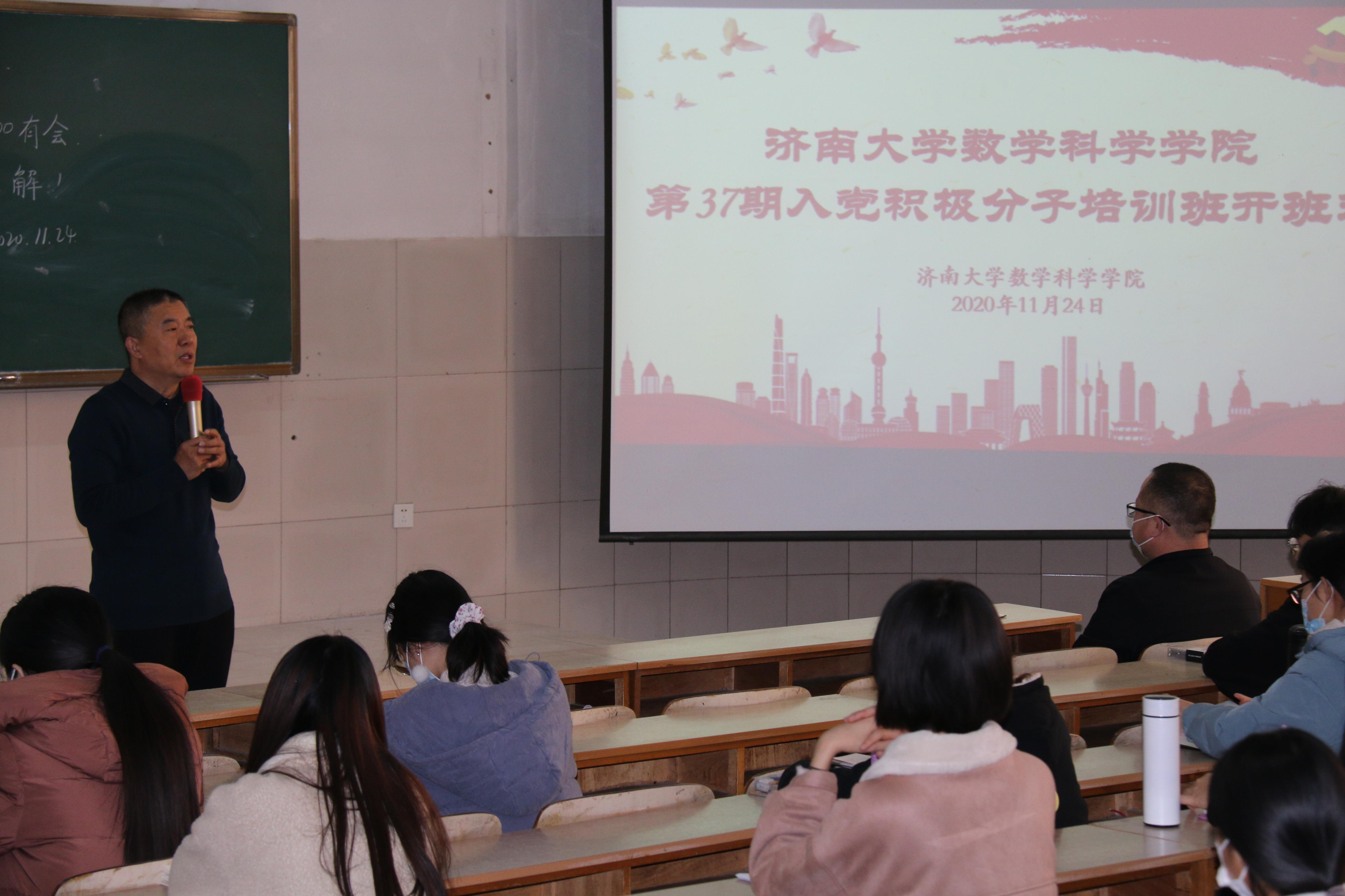 为了加强学生党员队伍建设,严把学生党员发展“入口关”,11月24日下午,今年会jinnian官网党委在2教103举行入党积极分子培训班开班仪式,学院党委书记侯启海出席开班仪式并作专题报告,学院组织干事屈昌雷,第37期200名入党积极分子参加培训班开班仪式。