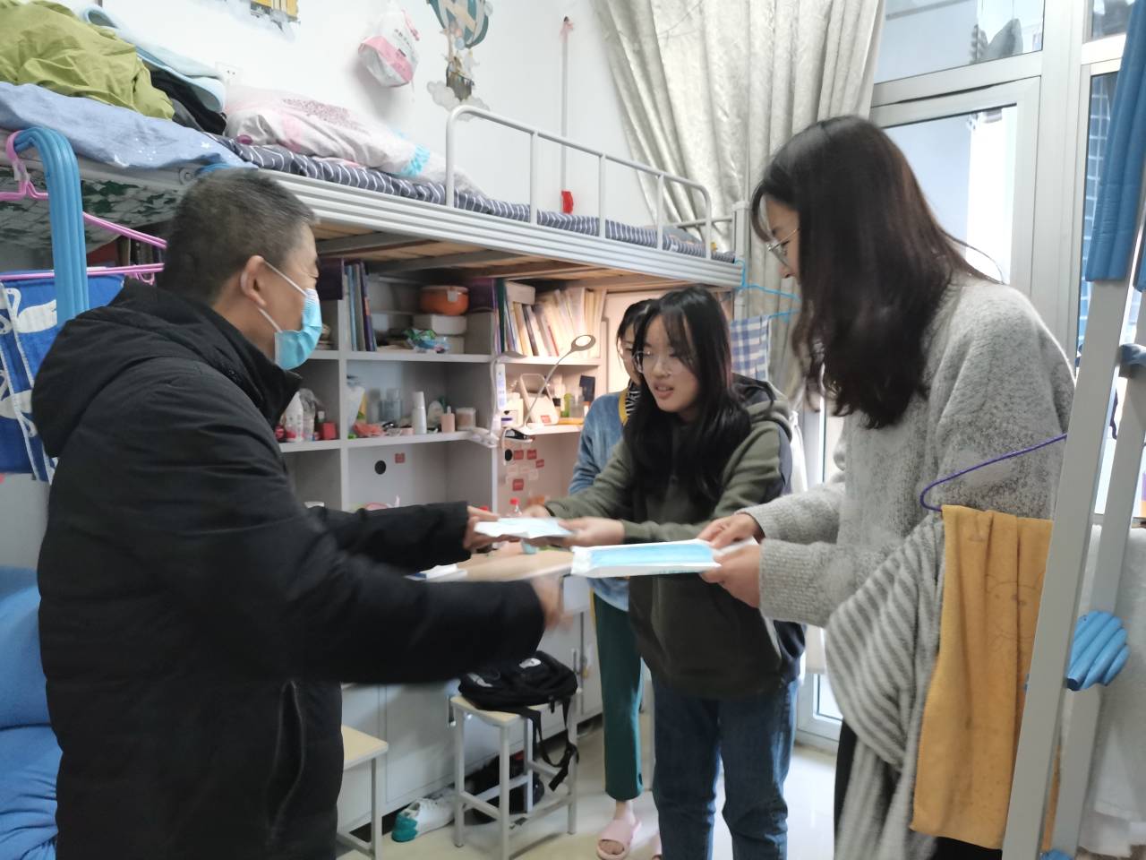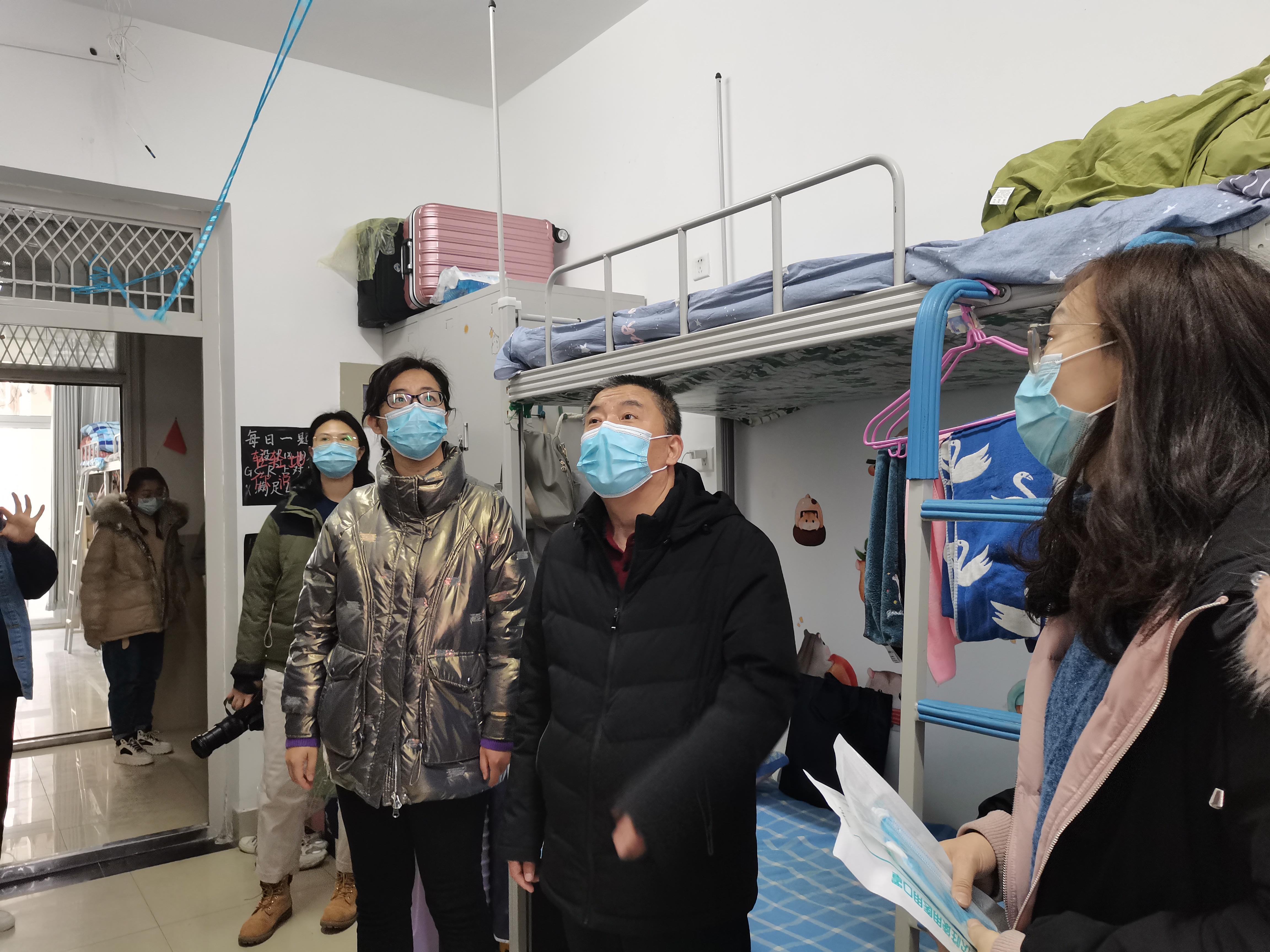 3月2日,侯书记、张沂红副书记以及学办辅导员深入学生宿舍,走访慰问返校同学,并为返校同学带去了口罩等防疫物资。侯书记一行认真查看了学生的宿舍卫生、通风条件、内务整理、生活实施运转等情况,逐一排查了宿舍可能存在的安全隐患,详细了解了学生返校过程以及返校后的学校生活情况,叮嘱同学们要养成良好的生活卫生习惯,做到戴口罩、勤洗手、多通风,严格执行学校每日早中晚体温检测制度,同时,希望同学们尽快根据学校作息调整安排好自己的学习和生活,养精蓄锐,为新学期上课做好准备。走访结束后,同学们纷纷表示,疫情防控期间,一定会严格遵守学校和学院的相关规定,加强锻炼、健康作息,努力学习、快乐生活,以实际行动配合好学院做好疫情防控工作。