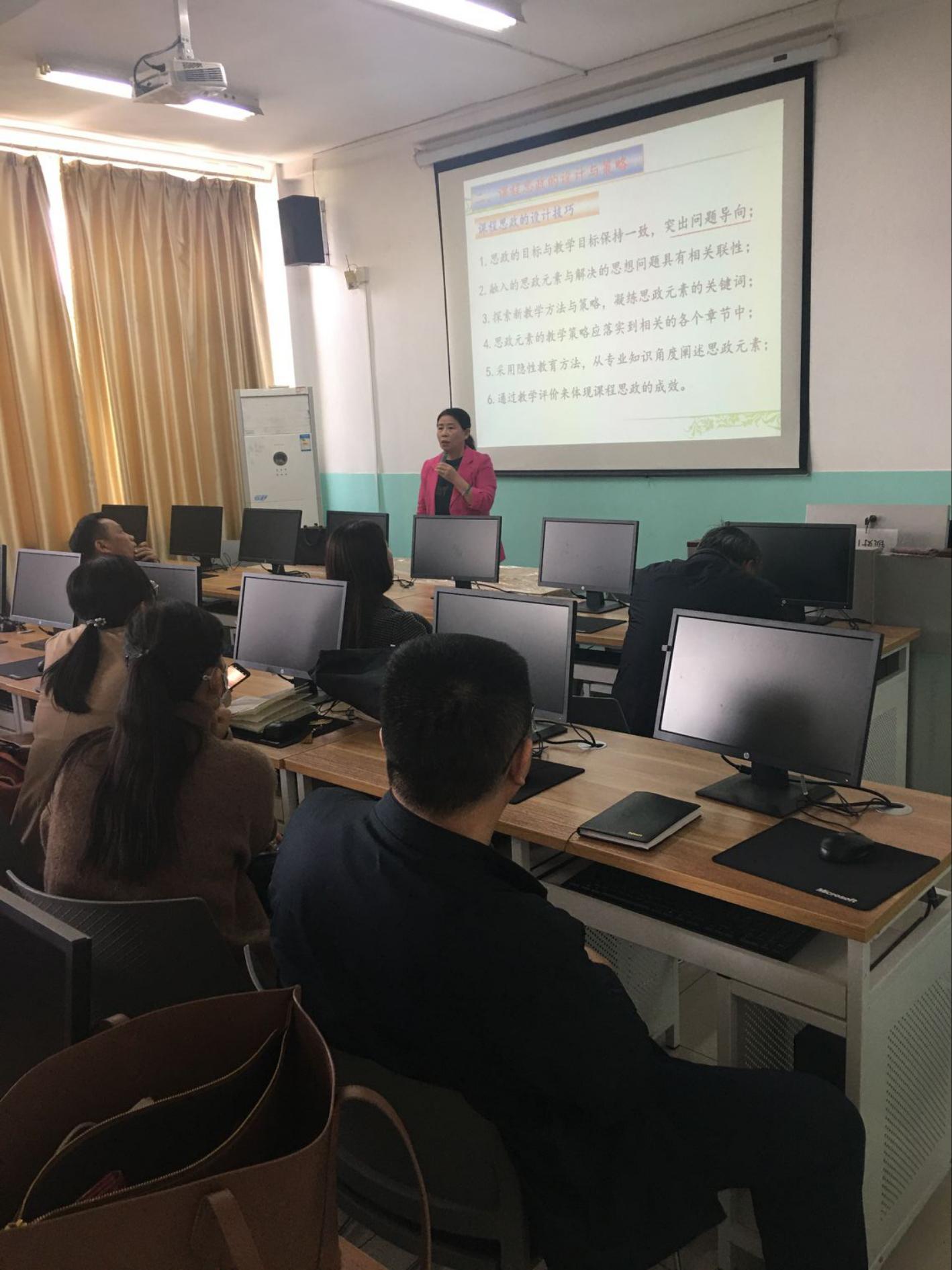 3月30日下午,学院邀请我校优秀教学奖获得者、优秀教师苗丽安教授在6楼实验中心机房做了《课程思政理念策略及教学实践探索》报告。报告会由学院和党委教师工作部 教师发展中心合办,副院长王纪辉教授主持,学院各系主任和各课程组教师参加了报告会。