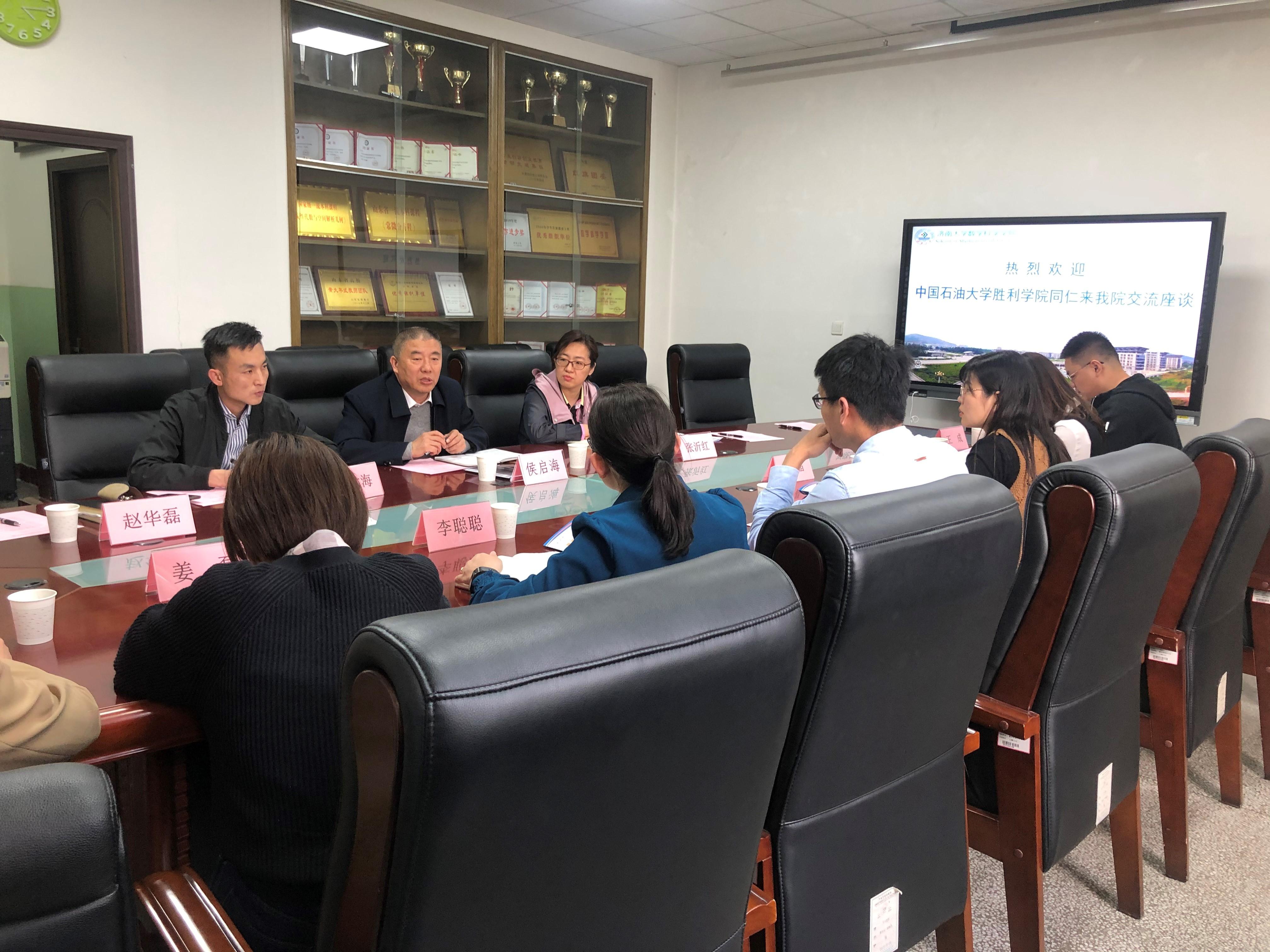 4月15日下午,中国石油大学胜利学院机械控制与工程学院党总支副书记张成明,油气工程学院党总支副书记李聪聪,教育与艺术学院党总支副书记王晶,机械控制与工程学院学工办主任姜磊,油气工程学院学工办主任王成,教育与艺术学院学工办主任胡洪翠,专职辅导员王兆婷一行来今年会官网进行学生工作交流座谈。今年会jinnian官网党委书记侯启海,今年会jinnian官网党委副书记、副院长张沂红,团委书记赵华磊以及兄弟学院团委书记、辅导员参加座谈。