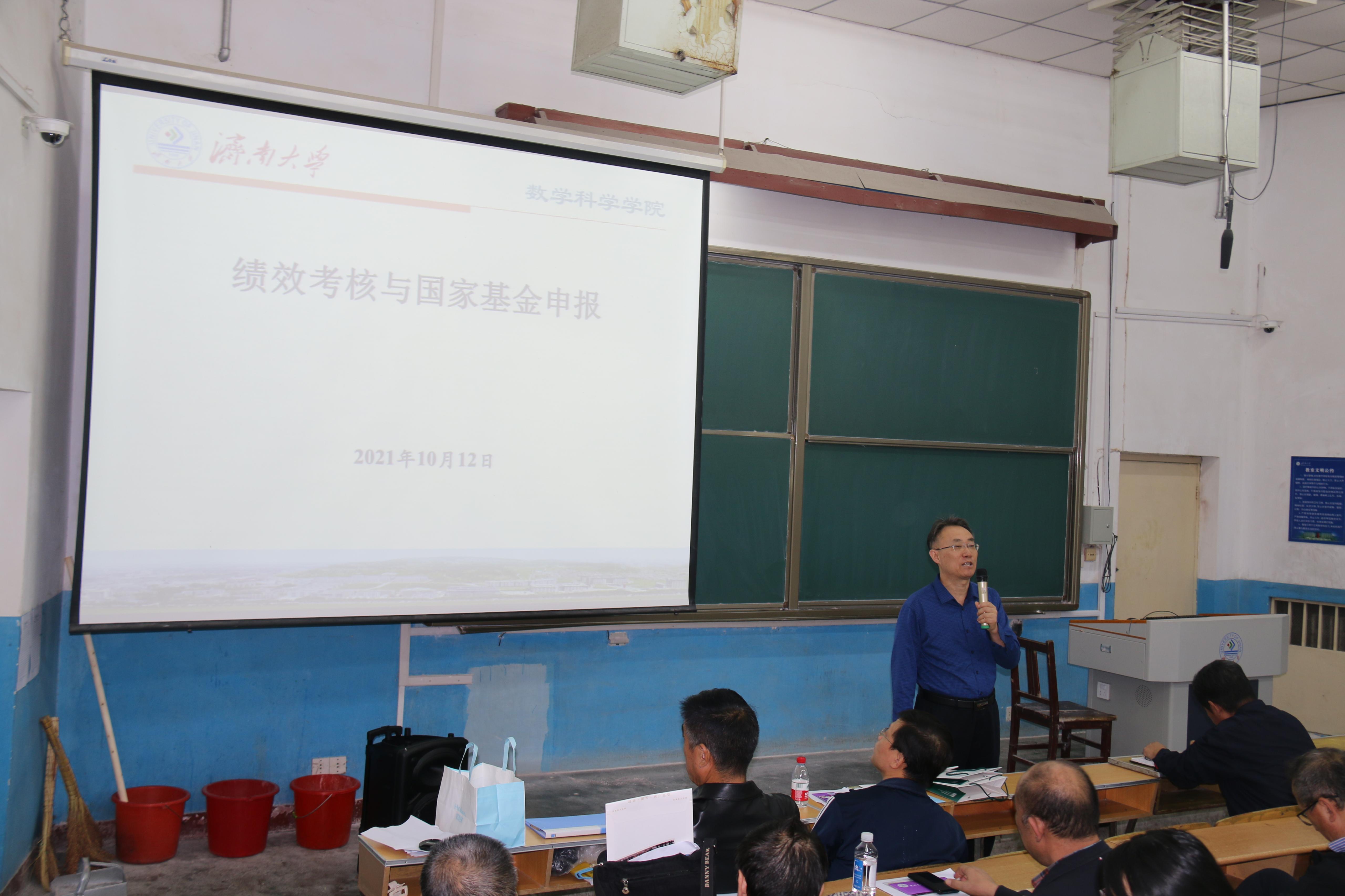 学院院长管延勇从考核原则、考核对象、考核周期与时间、考核内容、考核流程和方法、考核结果确定以及运用等方面全面解读了《今年会jinnian官网党政群团教辅单位绩效考核办法(试行)》《今年会jinnian官网中层干部年度考核办法》等文件,重点解读了学院2021年教学、科研、对外交流、科技创新、学生考研率等具体考核指标任务,并就如何保证完成年度工作任务提出了要求。随后,管院长梳理了“十三五”期间校院国家自然科学基金申报情况,总结表扬了学院在“十三五”基金立项的优异表现,全面介绍了“十四五”开局之年学校国家自然科学基金的申报以及立项情况,重点介绍了学院2022年国家自然科学基金申请的初步思路与想法。
