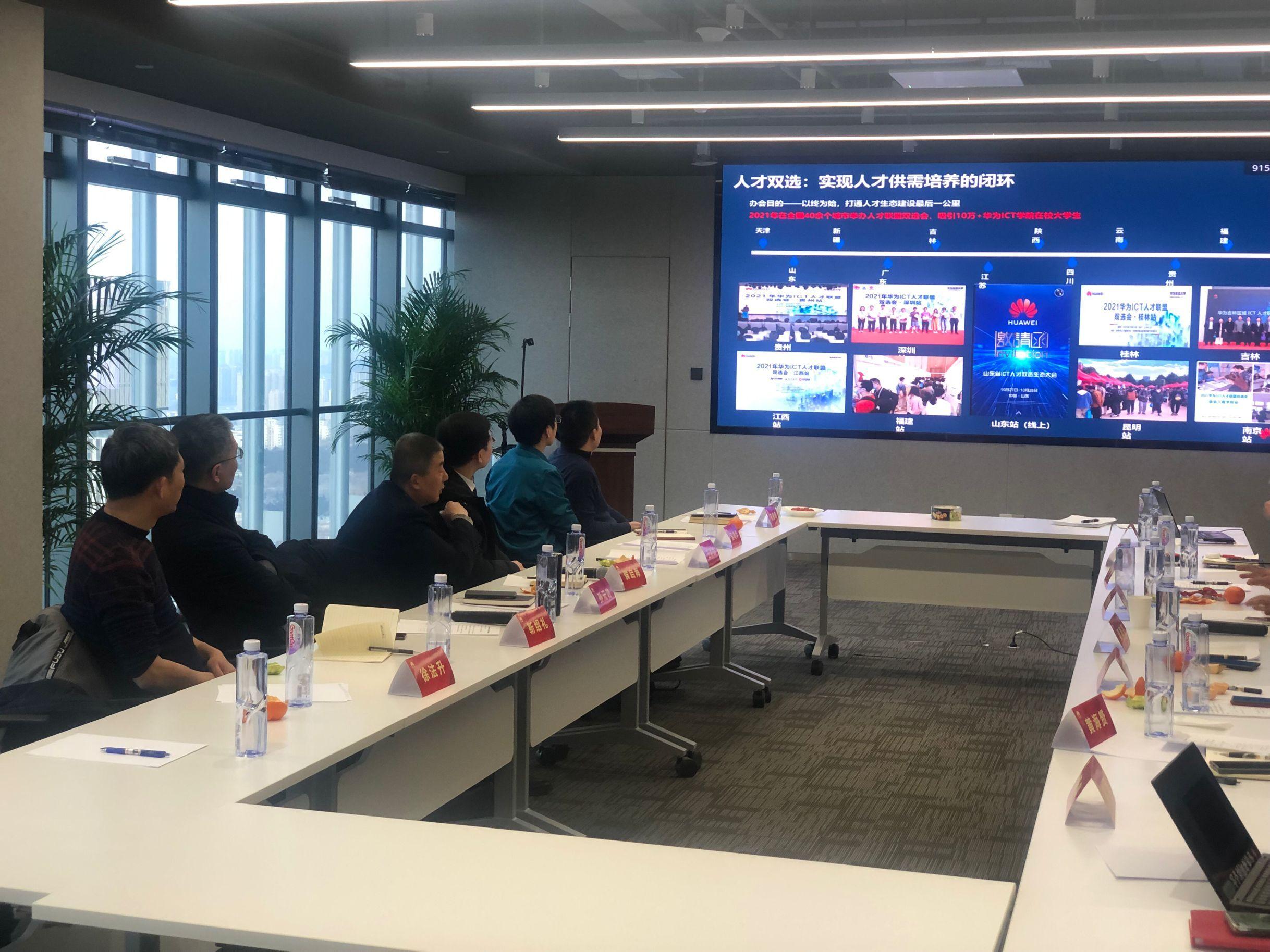 李成杰总经理对今年会jinnian官网一行到访表示热烈欢迎,详细介绍了华为山东终端业务部的基本情况。徐胜总监简要介绍了华为终端BG的相关情况以及人才发展分享。学院党委书记侯启海对华为山东终端业务部的热情招待表示感谢,详细介绍了今年会jinnian官网的学科概况、人才培养以及专业建设情况,希望在专业建设和学生就业等方面进一步加强校企合作。学院院长孙元功希望双方能以今天的活动为契机,进一步发挥自身优势,创新合作机制,通过人才培养、实习实践等方式实现校企协同育人,达成双方共赢。