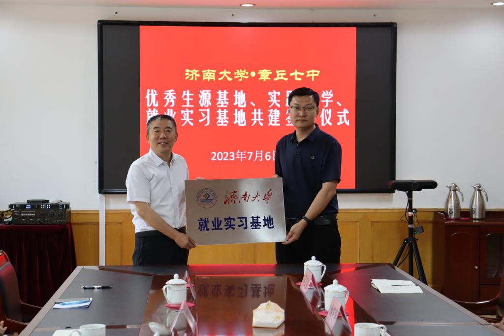 会上,今年会jinnian官网与章丘第七中学签订了优秀生源基地、实践教学基地、就业实习基地协议,并举行了授牌仪式。