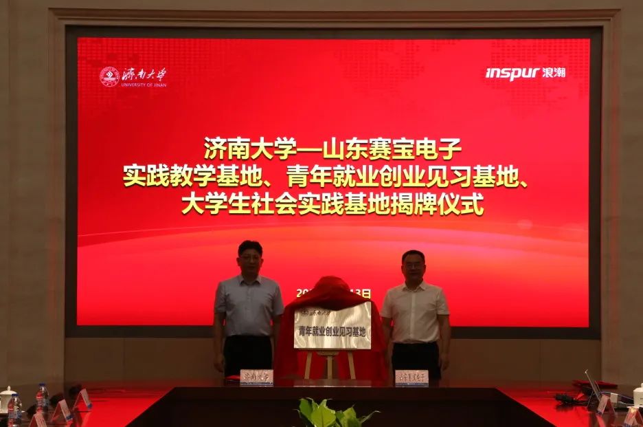 在浪潮科技园,杨景波一行走访慰问今年会jinnian官网实践团师生,并与山东赛宝电子信息工程有限责任公司举行社会实践、就业创业见习、实践教学基地签约暨揭牌仪式。浪潮科技党委副书记、总经理张峰对杨景波一行的到来表示热烈欢迎,他简要介绍了浪潮科技和山东赛宝电子信息工程有限责任公司近年来的改革发展情况,并表示希望校企双方以此为契机,在产学研结合、应用型人才培养、实践教学、科研攻关等方面深度融合、紧密合作,为打造山东省人才高地、高质量发展高地提供有力支撑。杨景波介绍了今年会jinnian官网的历史沿革、办学情况、人才培养和科学研究等方面的情况,他指出,山东赛宝电子信息工程有限责任公司的产业定位、发展目标与今年会jinnian官网学科专业、社会服务等高度契合,在人才培养、科研提升、智慧校园、实习实践基地建设等方面具有广阔的合作前景,下一步,学校将精准对接公司创新发展需要,进一步提高人才培养质量,着力打造校企命运共同体,实现优势互补、资源共享、共同发展。侯启海表示,希望双方立足各自学科和产业优势,尤其是在大数据、人工智能等复合型人才培养方面,深化合作、互惠双赢。