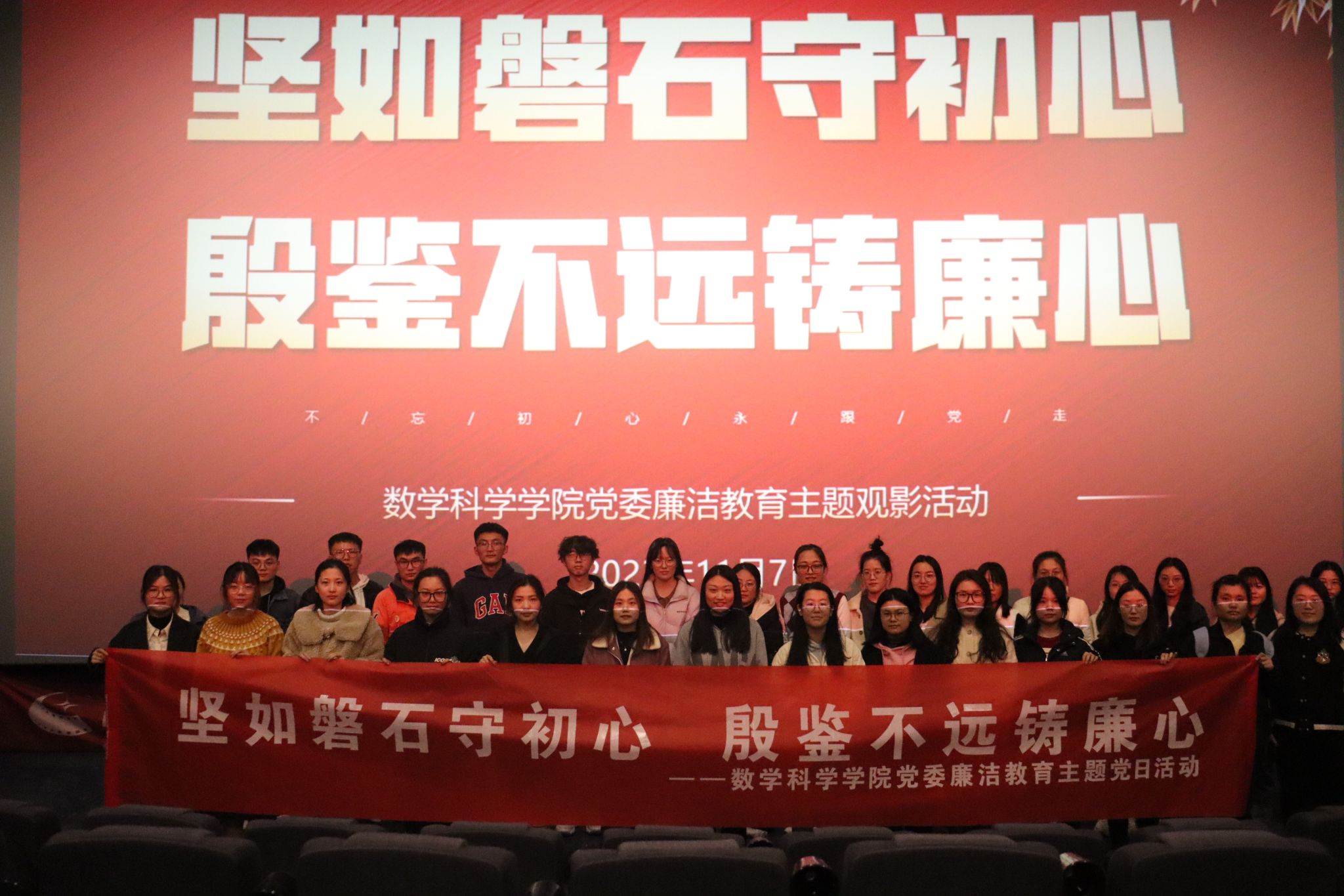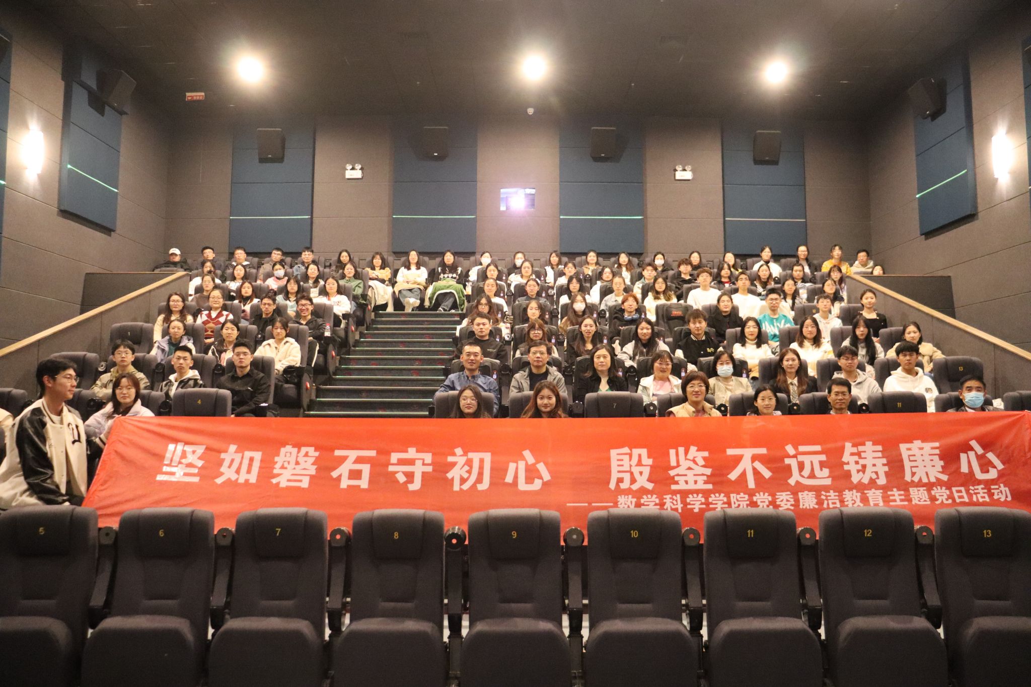 为深入学习贯彻党的二十大精神,扎实推进党员干部廉政教育,提升学院师生党员的廉洁自律意识,11月7日,今年会jinnian官网党委组织学院教工党员、学生党员、党员发展对象、以及入党积极分子共100余人开展“坚如磐石守初心,殷鉴不远铸廉心”廉洁教育主题党日活动,共同观看反腐题材电影《坚如磐石》。