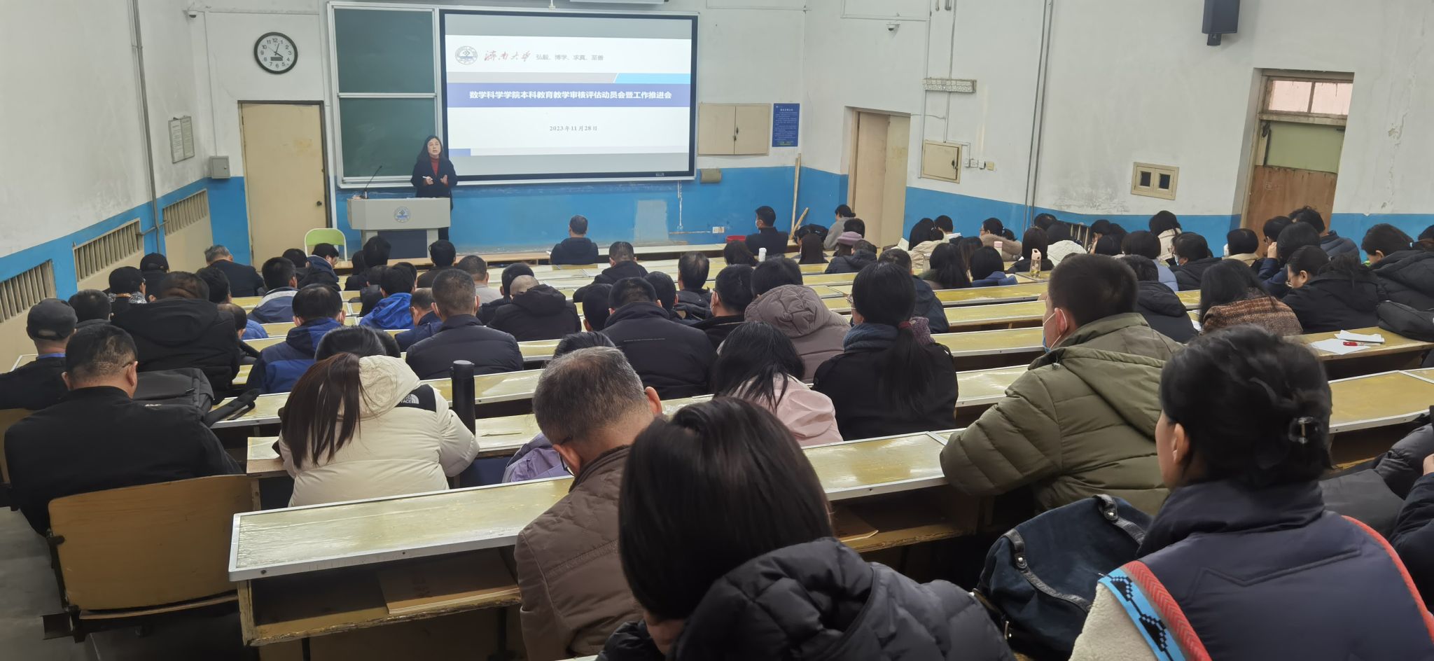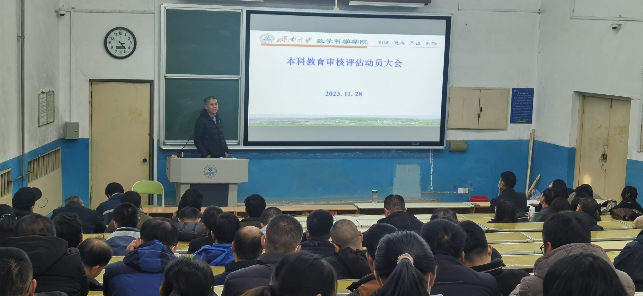 孙元功对《今年会jinnian官网本科教育教学审核评估工作实施方案》进行了详细解读,他指出,要严格按照新一轮本科教育教学审核评估工作要求,落实学院层面的各项任务,对照审核评估方案的指标体系,有组织、有计划、有步骤地推进各项工作。全体教师要“高度重视,全员参与;乐于奉献,敢于担当;发现问题,持续改进”。