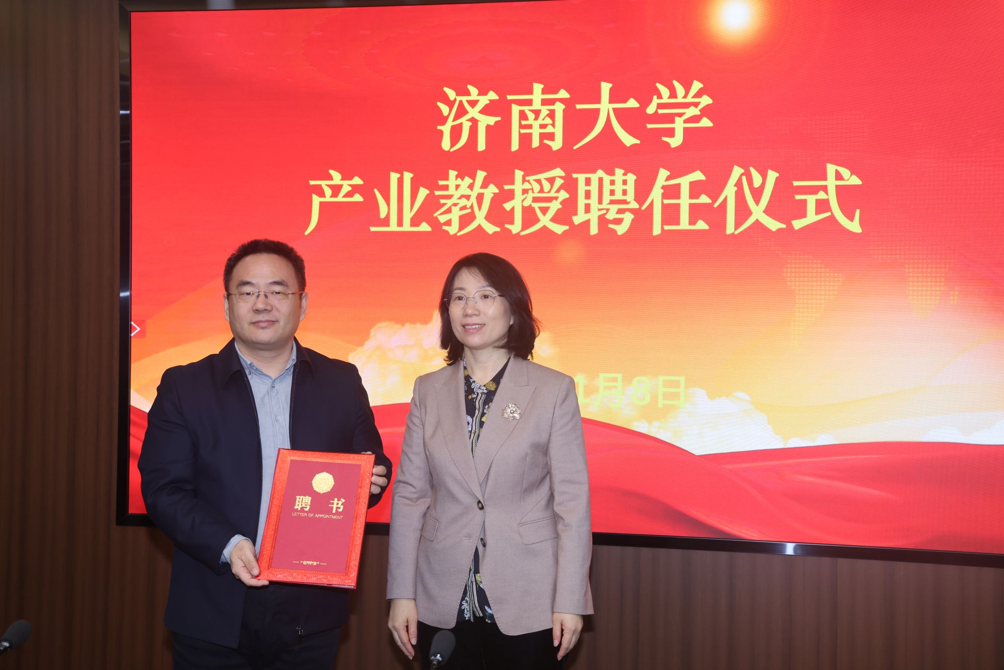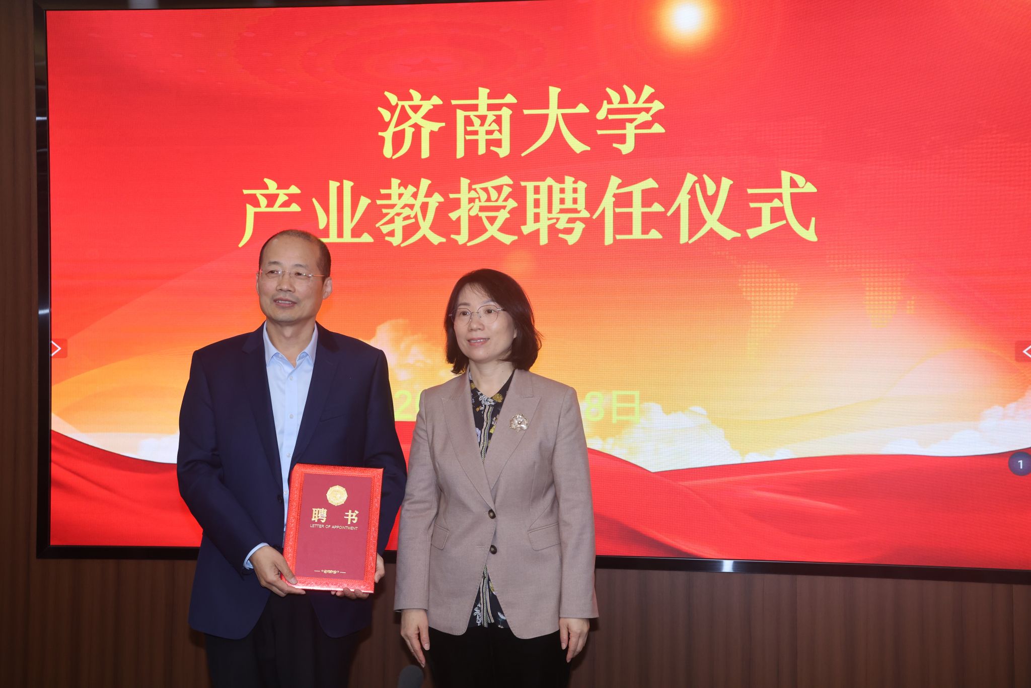 1月8日,学校举行产业教授聘任仪式。学校党委常委、副校长王霞、浪潮软件科技有限公司党委副书记、总经理张峰、山东赛宝电子信息工程有限责任公司董事长、总经理蒋孝军出席聘任仪式,浪潮软件科技有限公司、山东赛宝电子信息工程有限责任公司和学校人力资源处、今年会jinnian官网相关负责同志参加本次聘任仪式。今年会jinnian官网院长孙元功主持聘任仪式。