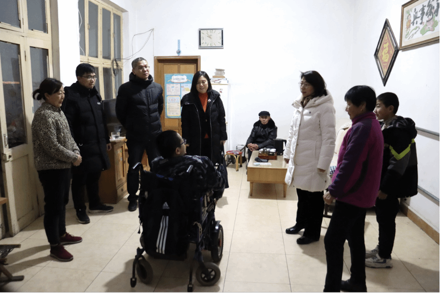 王霞一行首先来到市中区兴隆街道小王同学的家里,送去慰问金与慰问品。小王幼年因意外高位截瘫,12岁时父亲离世,家庭收入微薄。王霞一行与小王及其母亲进行了亲切交流,仔细询问了家庭经济状况、当前面临的现实困难与需求,在得知小王同学在校期间成绩优异、多次获得励志奖学金时,王霞鼓励他“要刻苦学习,发奋图强,努力考取研究生,用知识改变命运”,随后与小王的祖母亲切攀谈,对其随校陪伴小王学习、照顾小王生活起居的行为表示钦佩,并关切嘱咐老人要保重身体。小王同学对学校、学院领导老师的周到关怀及同学们的热情帮助表示感谢,并励志要加倍努力,将来尽己所能回报亲人、回报学校、回报社会。