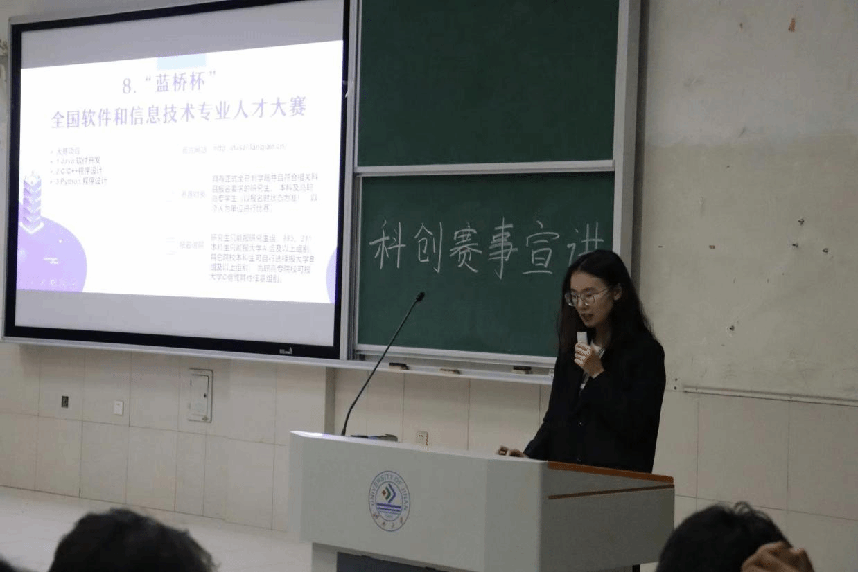 在科技日新月异的今天,创新已成为时代的最强音。为了让大学生领悟到科技创新的魅力和价值,激发大学生对新事物的探索欲望和对科技创新的热情,今年会jinnian官网科技创新部于9月29日在第二教学楼201成功举办科创赛事宣讲会,本次宣讲会由今年会jinnian官网学生会科技创新部部长徐靖瑄主持,2024级辅导员卢亚芳及24级新生参加此次活动