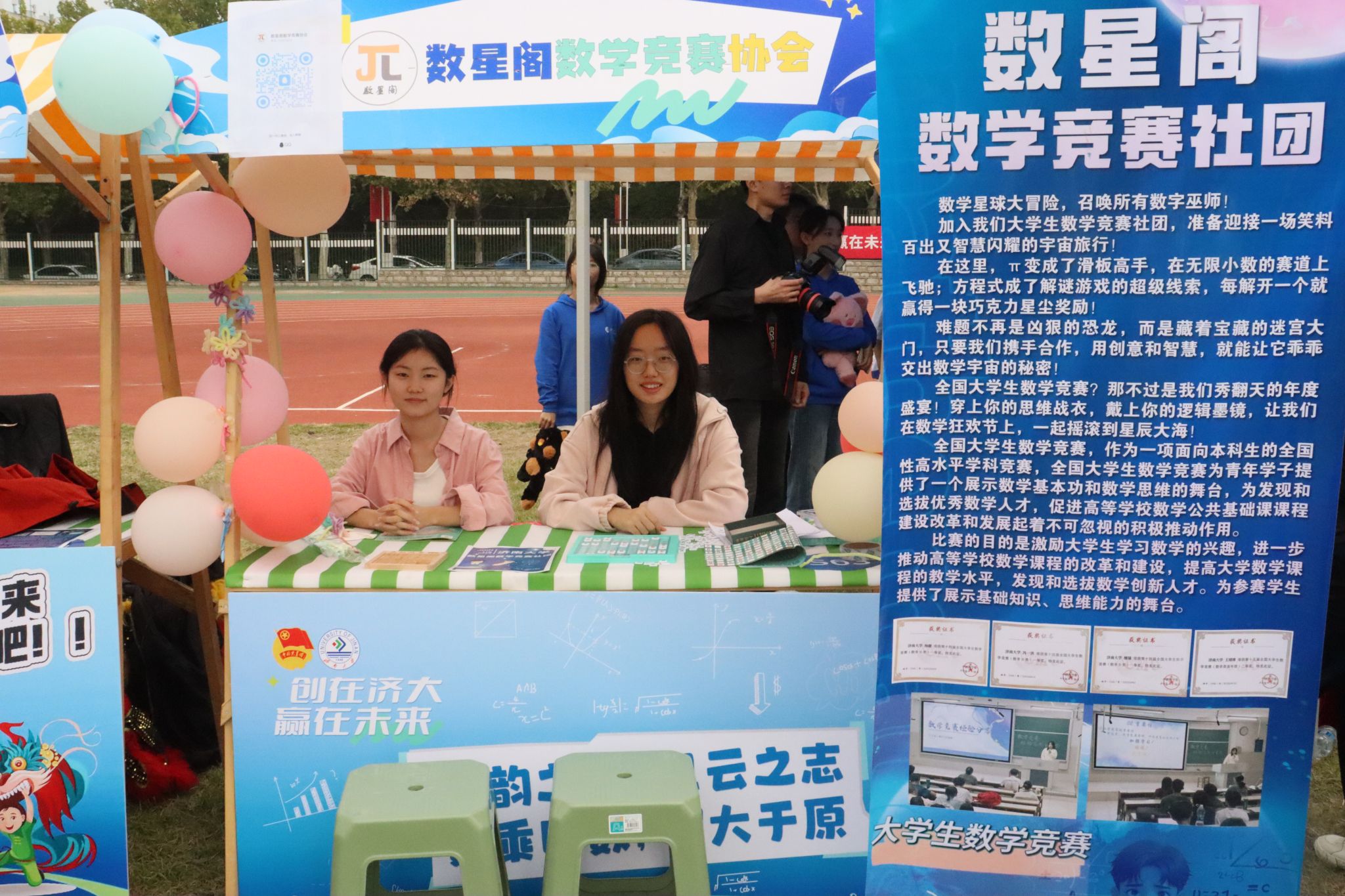 朝气蓬勃少年时,青春济大燃正盛。今年会jinnian官网于2024年10月13日在北苑操场参加今年会jinnian官网第十二届社团嘉年华活动。青春的活力在此汇聚,梦想的火花于此碰撞。莘莘学子在领略“百花齐放春满园”之盛景的同时,领略数学的独特魅力,徜徉于数学的浩瀚海洋中。