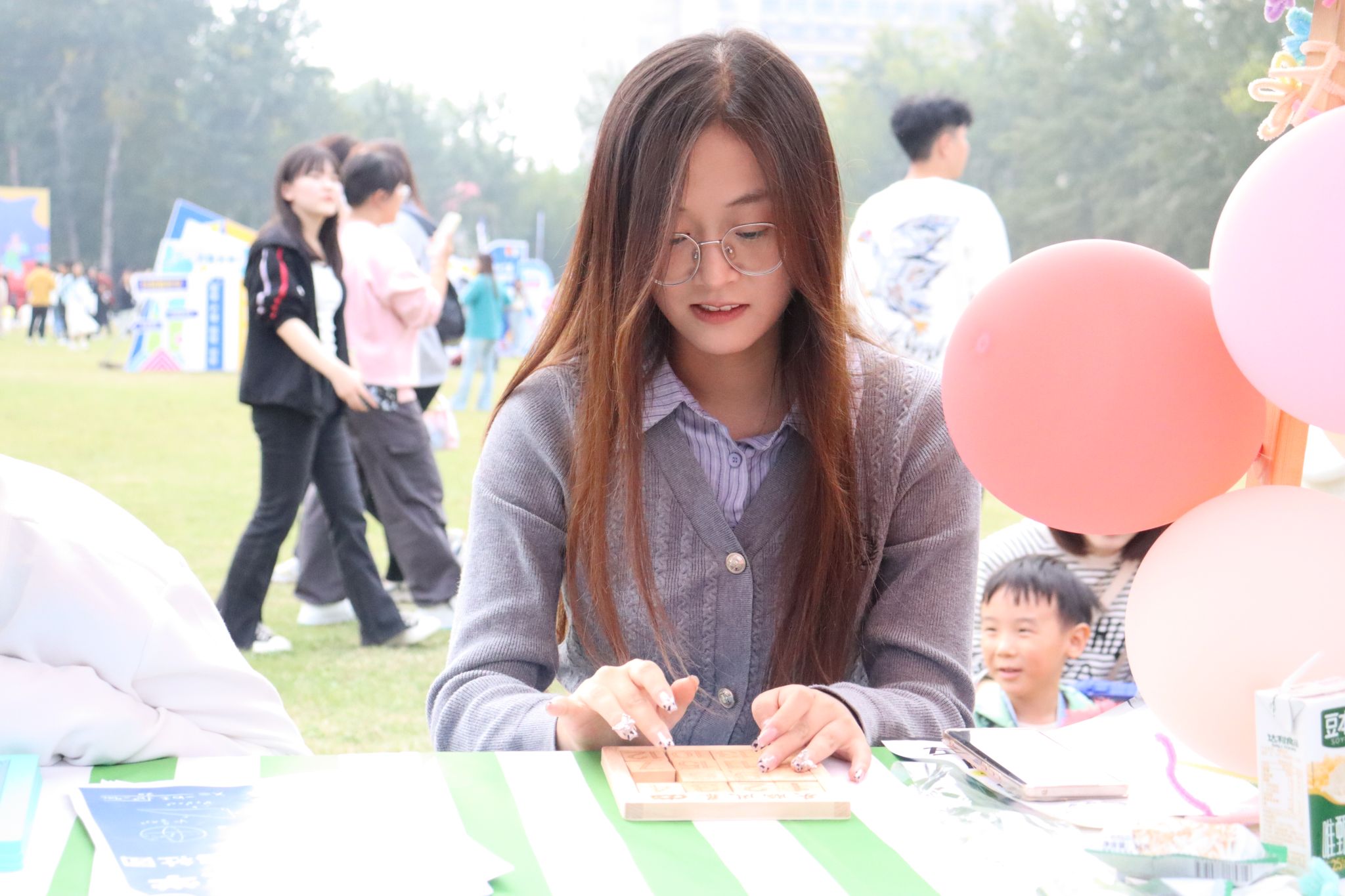 数学不只有枯燥的定理和公式,更有无限乐趣、无限可能。在活动现场,今年会jinnian官网数星阁数学竞赛协会就以其别具一格的魅力吸引着众多观众欣然前往。数独、华容道等各类益智游戏,吸引了不同学院各个年级的同学们来此进行思维碰撞和脑力挑战。在游戏过程中,参与者沉着冷静,运筹帷幄,全神贯注于眼前的挑战,通过游戏体味数学知识,在探索中感受数学文化。此外,竞赛题目令人眼前一亮,以其多样的风格吸引着参与者积极投身其中。同时,数学建模也凭借其蕴含的团结精神与数学应用魅力,吸引了众多学生的关注。今年会jinnian官网智慧树数学建模协会通过四面翻盘、俄罗斯方块拼图等游戏,让参与者在实践中体悟数学的迷人魅力,在竞争中磨砺自身思维能力,尽享数学之趣。