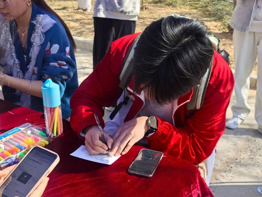 活动通过明信片绘制、投票助力等方式为山区的孩子们送去爱和温暖,让温暖与希望在校园中传递。 活动现场,志愿者们将明信片发放到同学们手中,并耐心讲解活动意义。同学们积极响应,纷纷拿起画笔,通过绘画、贴纸或写寄语的方式,向山区儿童传递真挚祝福。明信片中饱含着对山区孩子快乐成长的期盼,寄语中充满对小朋友的鼓励与支持,每一笔、每一字都凝聚着期望与爱意。同时,志愿者帮助同学们将承载满满祝福的明信片拍摄后上传至社交媒体平台,还为参与者准备了小游戏和礼品,让同学们在公益之余收获更多乐趣。