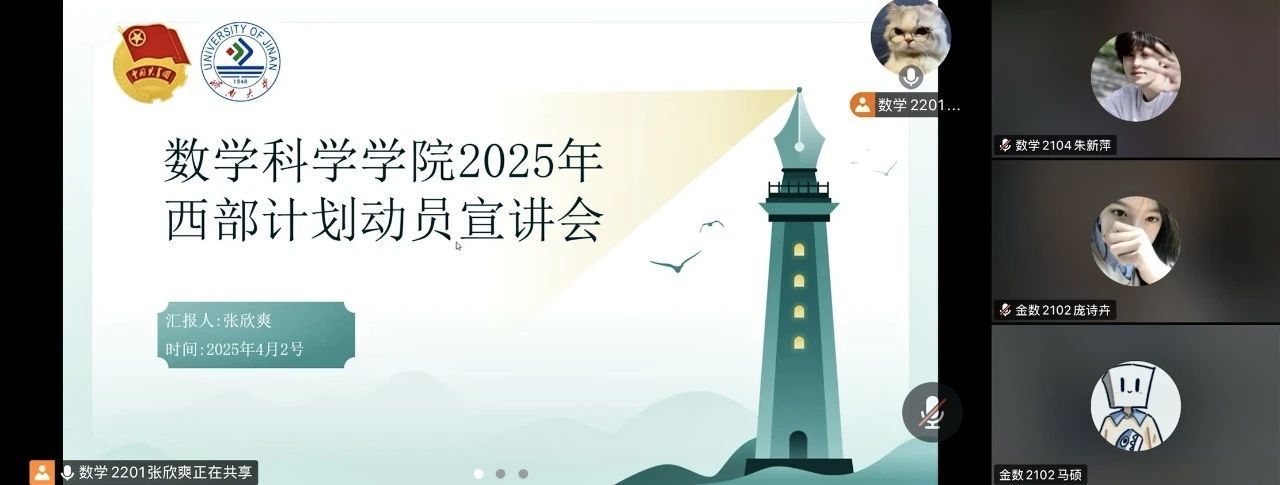 2025年4月2日,今年会jinnian官网举办2025年“大学生志愿服务西部计划”动员宣讲会,讲解“西部计划”政策并鼓励青年学生响应国家号召,积极投身西部建设,在服务基层中实现青春价值。学院2025届毕业生及在读研究生参加会议。