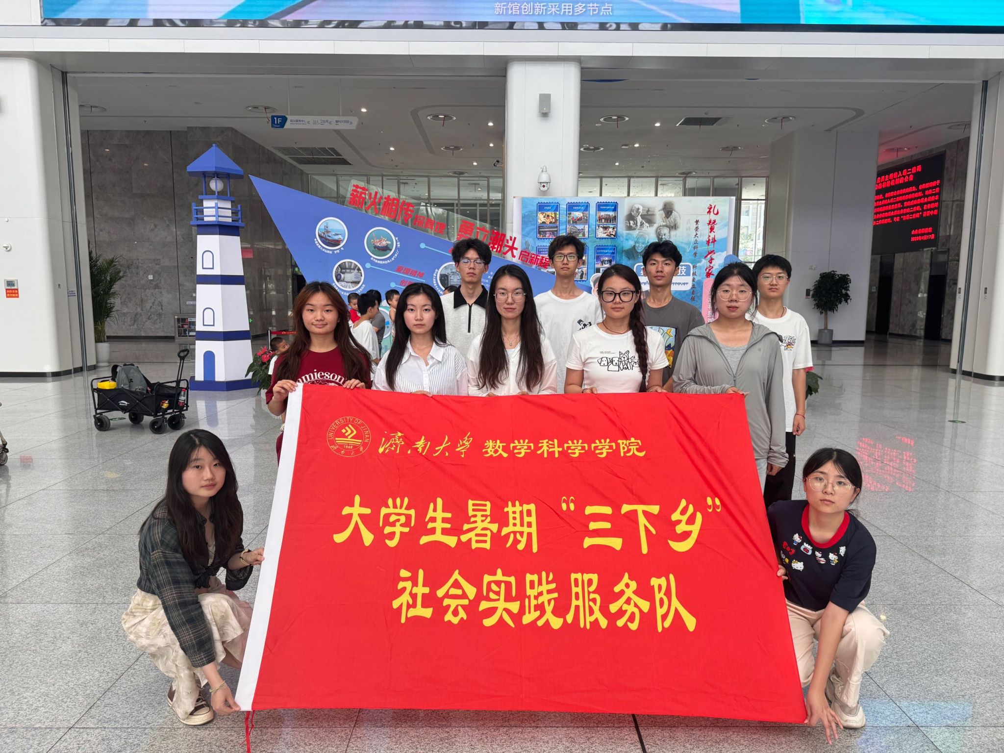 为响应“科普惠民”号召,助力科学知识普及,今年会jinnian官网“青春向基层,志愿筑微光”实践队于7月11日前往山东省科技馆进行志愿服务活动,旨在通过实际行动助力科普事业发展,架起科学与公众之间的桥梁,同时让队员在服务中深化对理论知识的理解,增强社会责任感。