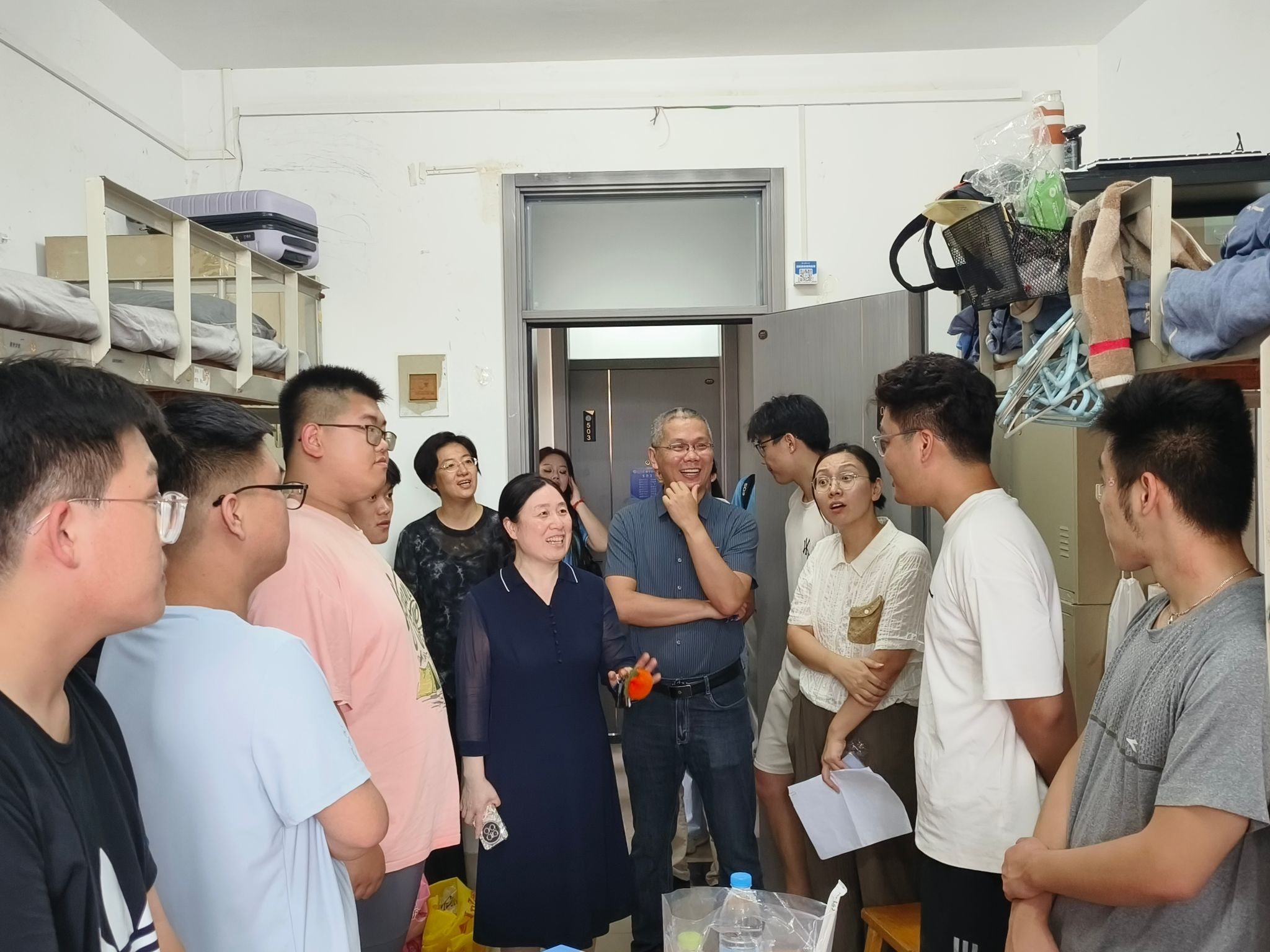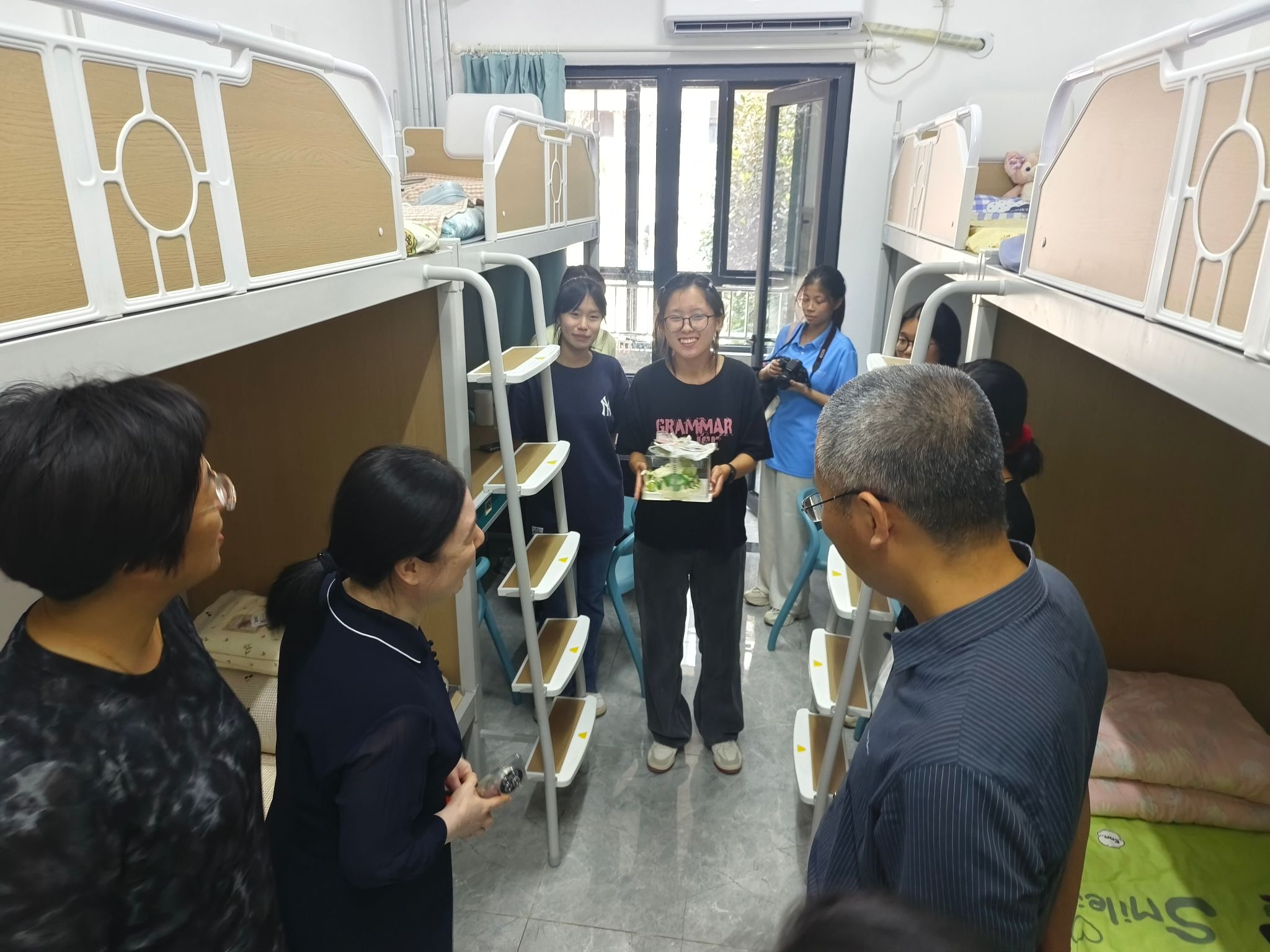 学院领导高度重视迎新工作,学院党委书记崔英静,院长孙元功,学院党委副书记、副院长张沂红及新生班主任,辅导员等亲临现场,与新生及家长亲切交谈,答疑解惑。在新生宿舍,领导和老师们仔细查看居住环境,关心新生生活需求。大一新生常明佳在开学首日迎来了自己的生日,学院领导老师为她共同庆生,让初入大学的不安,化作了温暖的情谊,让新生真切感受到数院大家庭的友爱。