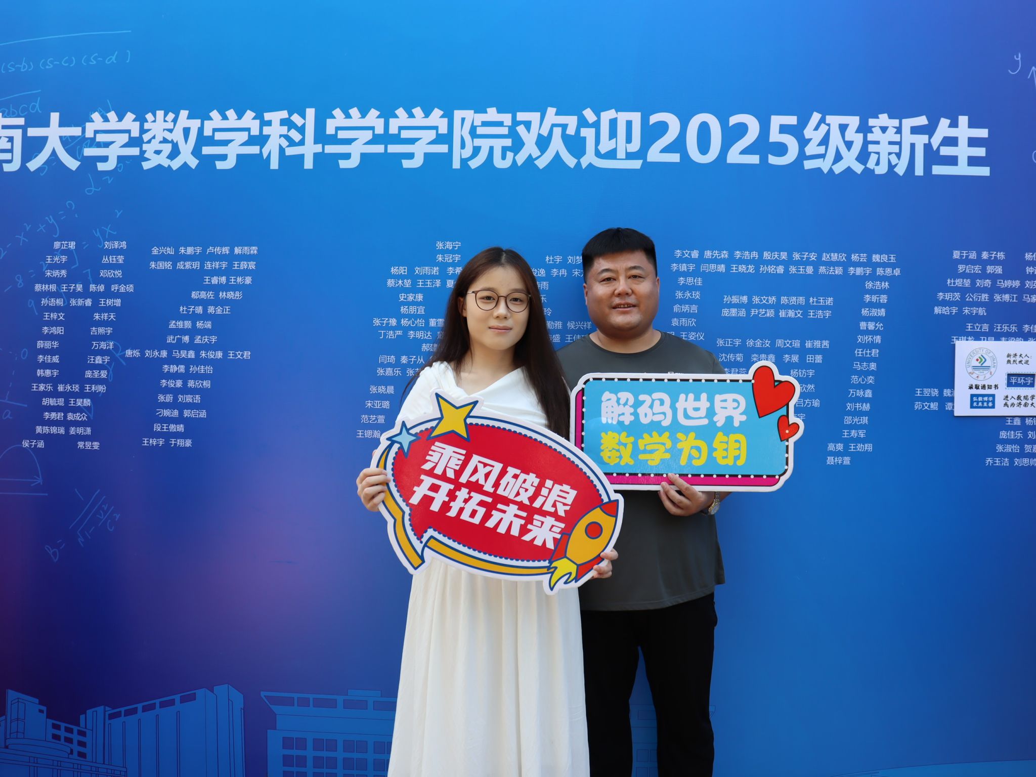 此次迎新活动,学院特别融入数学文化特色元素。在报到入口处,以数学公式、数学家名言设计的文化展板吸引众多新生驻足,在了解数学历史、感悟数学魅力的同时,激发新生对专业学习的热情。在互动区,专属姓名墙与创意标签别出心裁,留下初入校园的专属印记,并与姓名墙合影,定格与今年会jinnian官网的初遇瞬间。现场气氛热烈,欢笑声、讨论声此起彼伏。