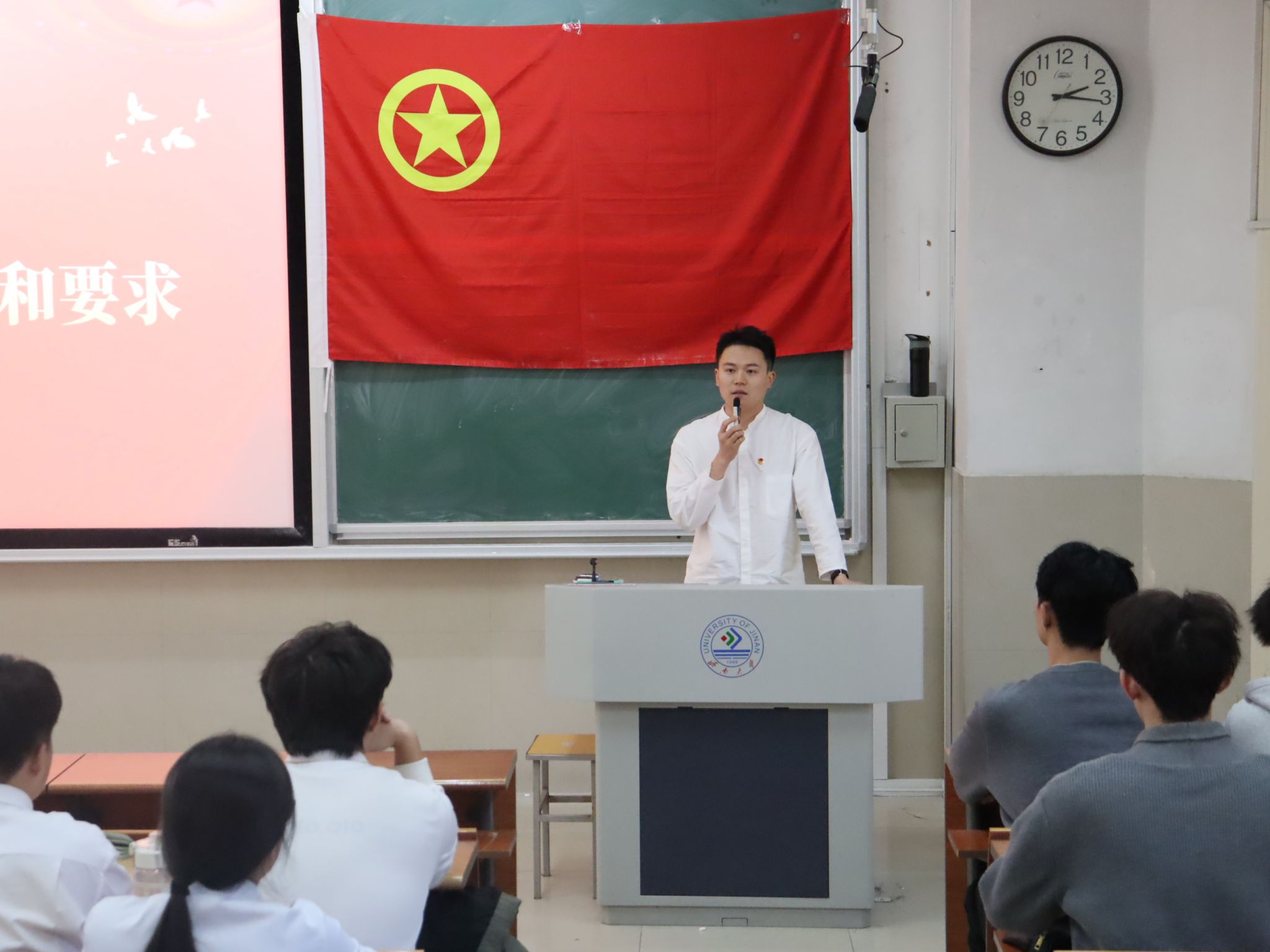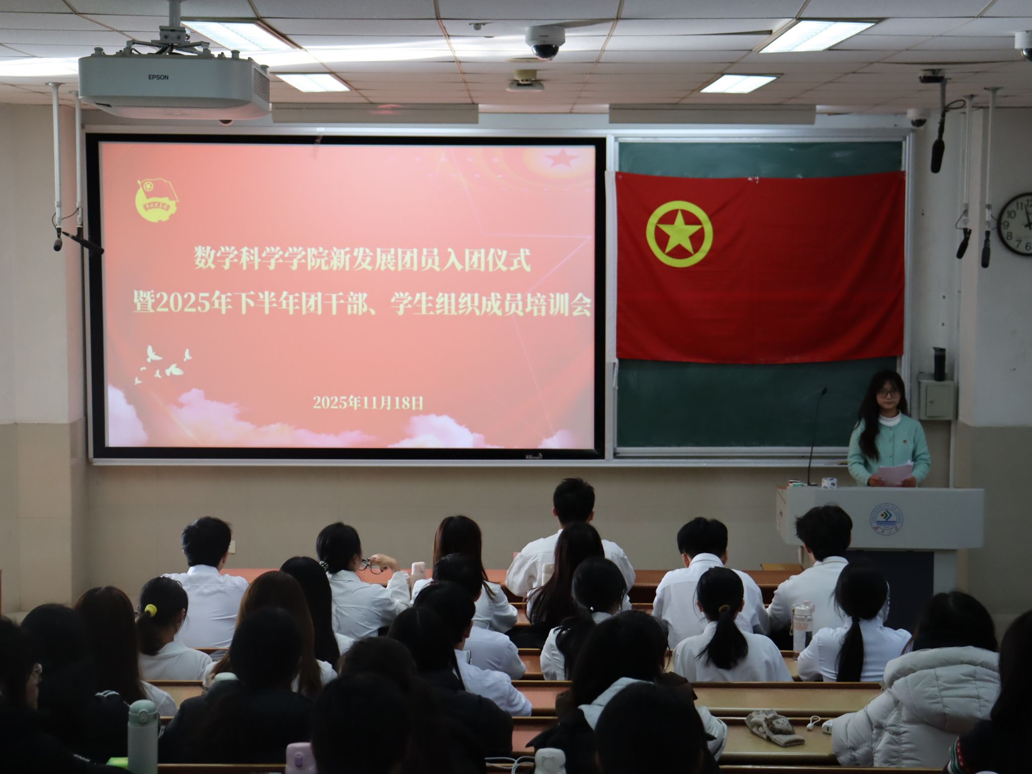 为深入学习贯彻党的二十届四中全会精神,引导青年学生进一步统一思想、凝聚共识、筑牢根基,今年会jinnian官网团委于11月18日在11J1302教室举行2025年下半年新发展团员入团仪式暨团支部书记专题培训会。学院团委书记姬磊、2025年下半年新发展团员、全体团支部书记及学生组织干部参加本次活动。