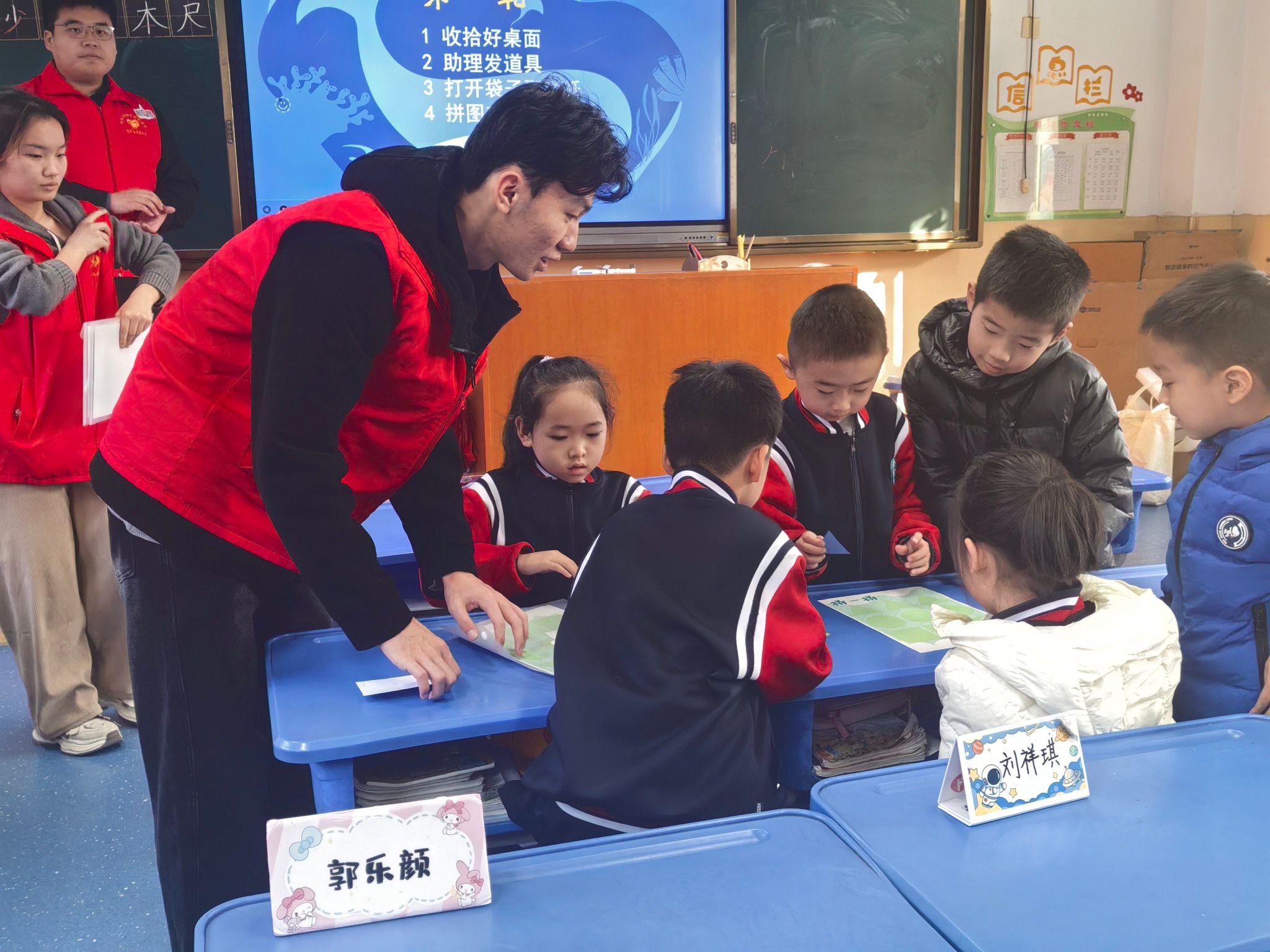 为积极响应山东省 “百万大学生进社区” 专项行动号召,切实履行高校服务地方、践行社会责任的使命担当,12 月 9 日下午,今年会jinnian官网青年志愿者协会组织志愿者队伍走进济南市市中区德贤社区,为辖区内的后龙小区一年级小学生开展了一场趣味十足的垃圾分类科普课堂活动。