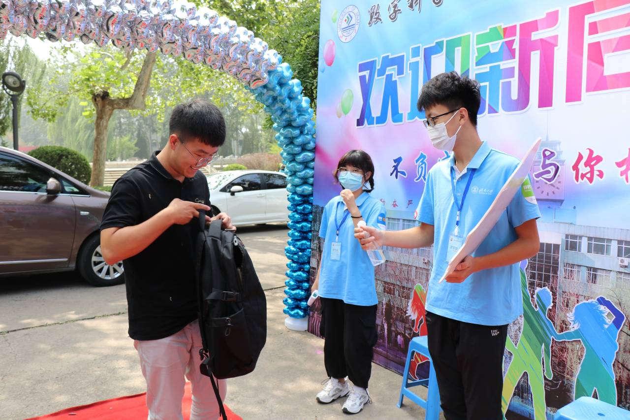 团委书记赵华磊,同时担任此次2020年的辅导员,询问新生和家长,并给予了美好的祝福。新生和家长一下车,众多的迎新志愿者马上微笑着迎上去:“你好”,“欢迎来到学校”。这样亲切的问候,让新生感受到了学院的热情。校团委学生会的学长学姐们给不厌其烦地新生、家长回答着他们提出的各种问题。学生会的学长学姐主动帮着拎行李,一路谈笑风生,学长学姐的热情也让新生对大学生活充满了期待。新生还在自己的大学留下了有纪念意义的照片。学院领导老师对他们寄予厚望,希望他们热爱现在美丽的校园,同时更希望他们收获知识。