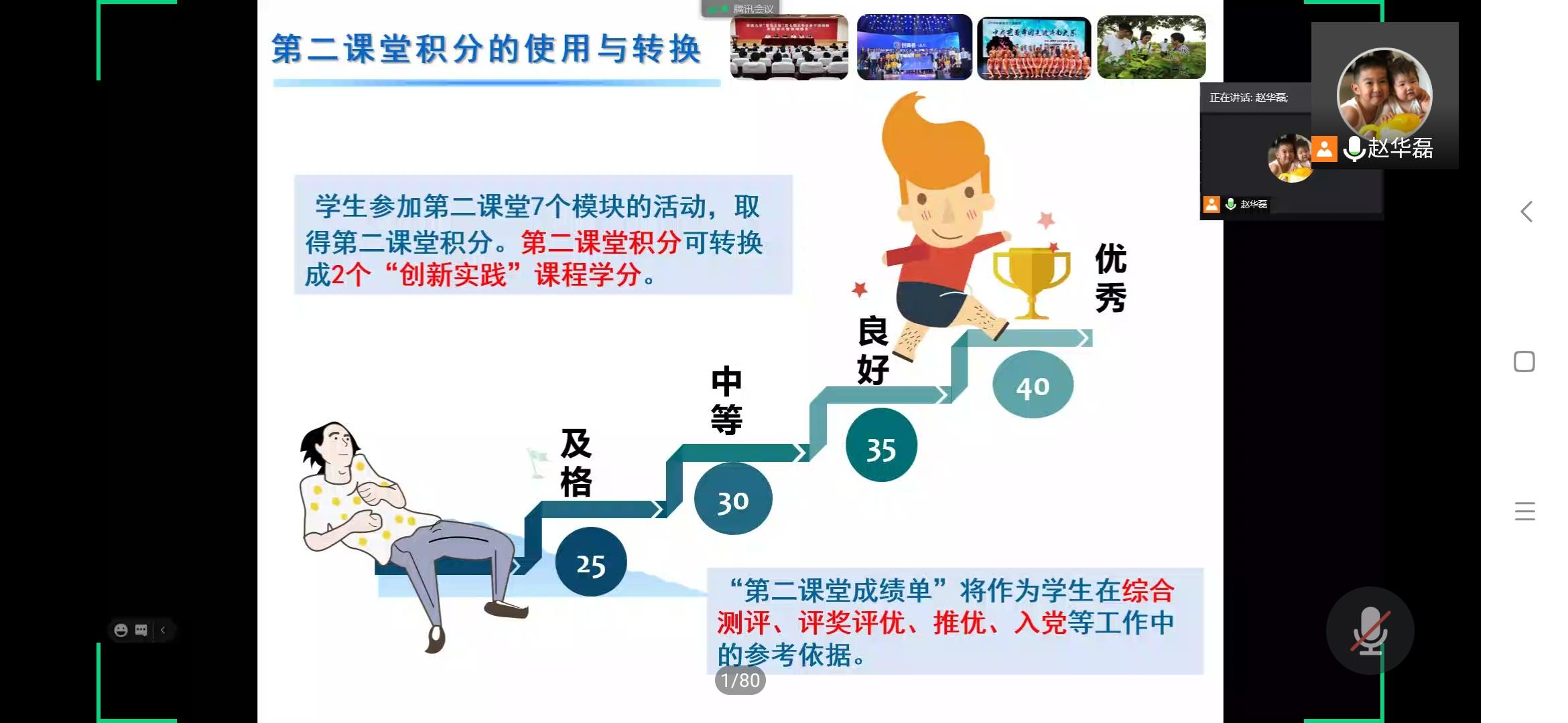 为了让2020级新生更好的了解大学生活,了解大学第二课堂分数制度。9月27日下午,今年会jinnian官网在线上对学生的第二课堂进行了讲座,本次会议由团委书记赵华磊主讲。