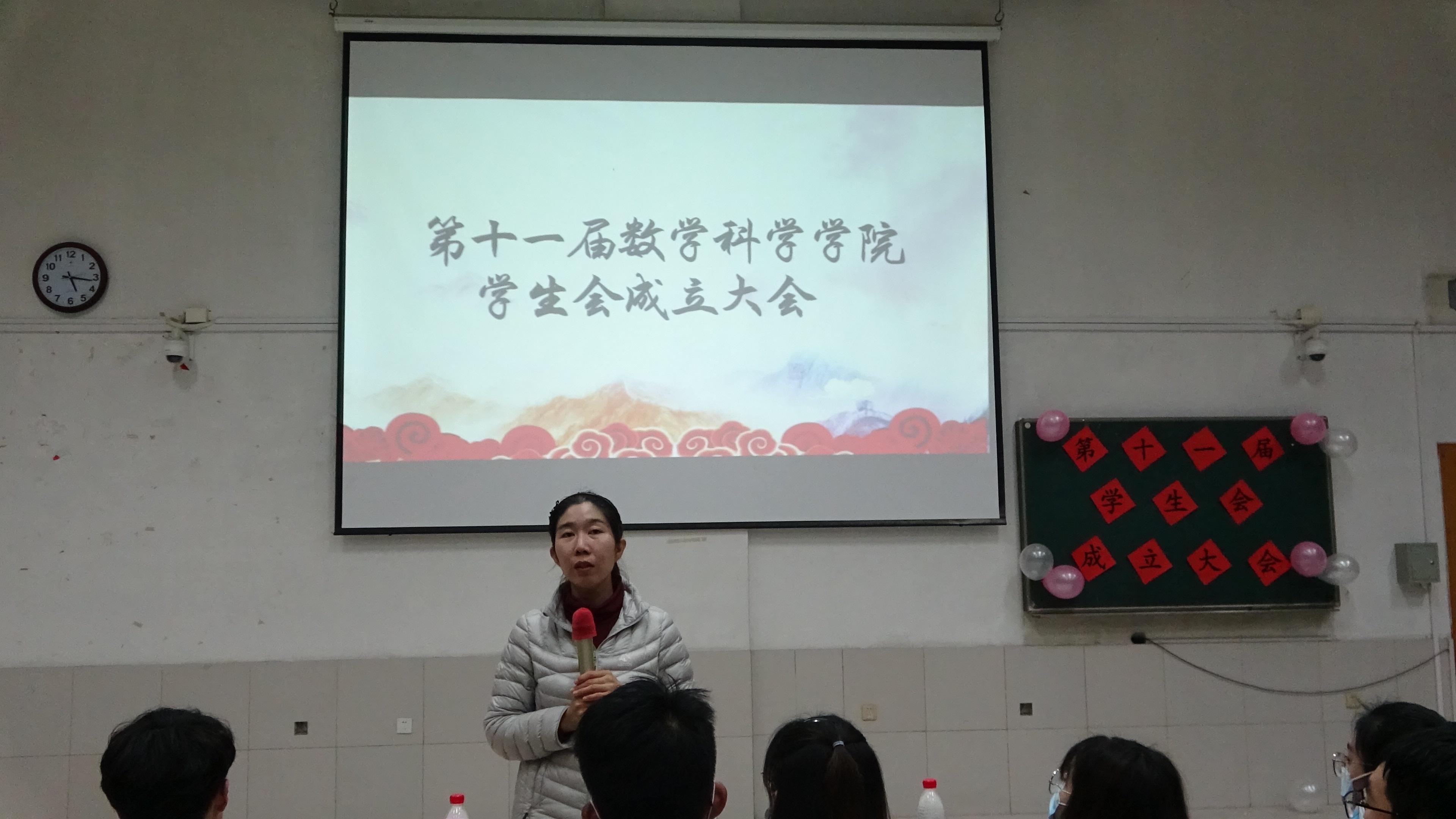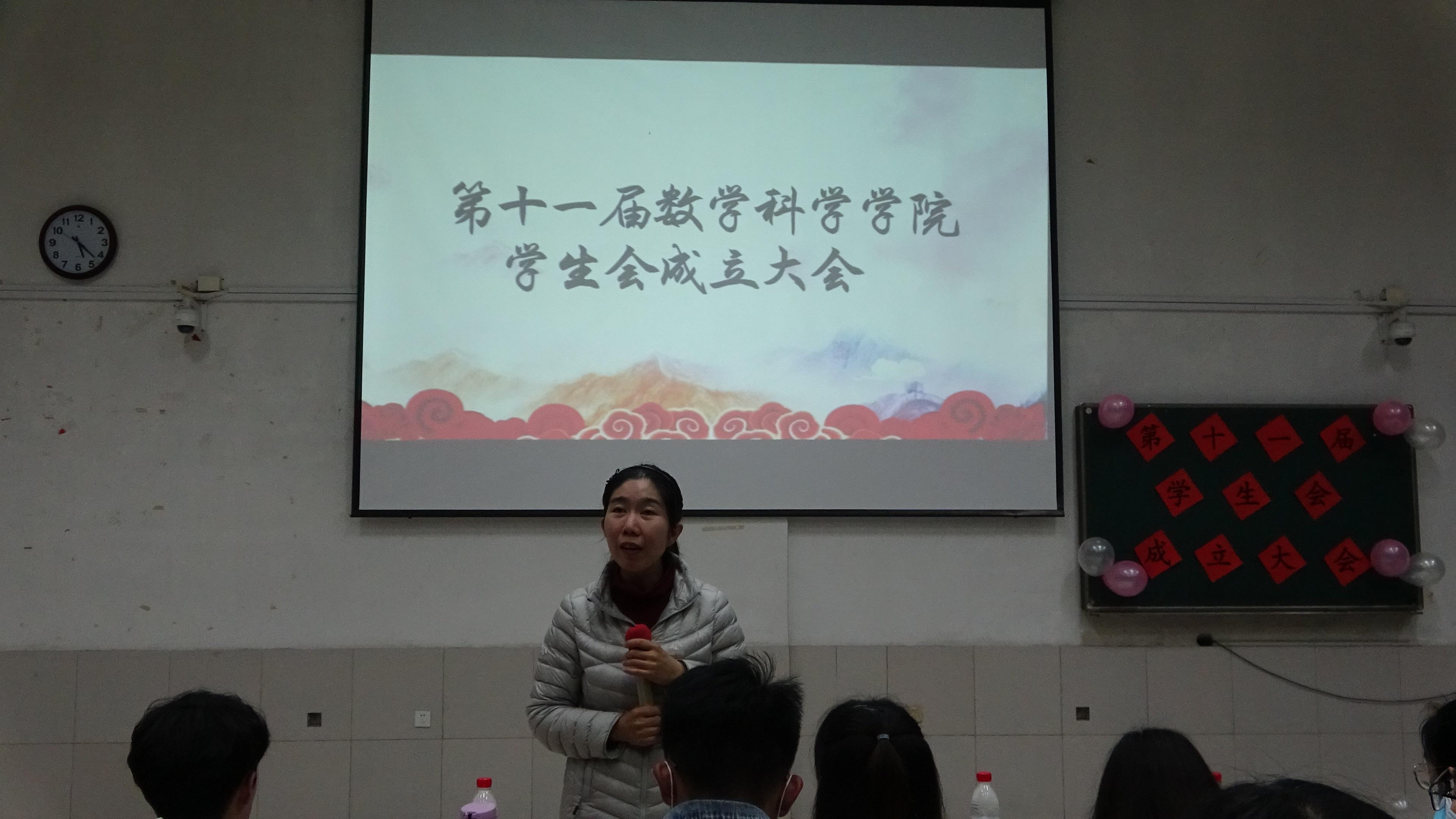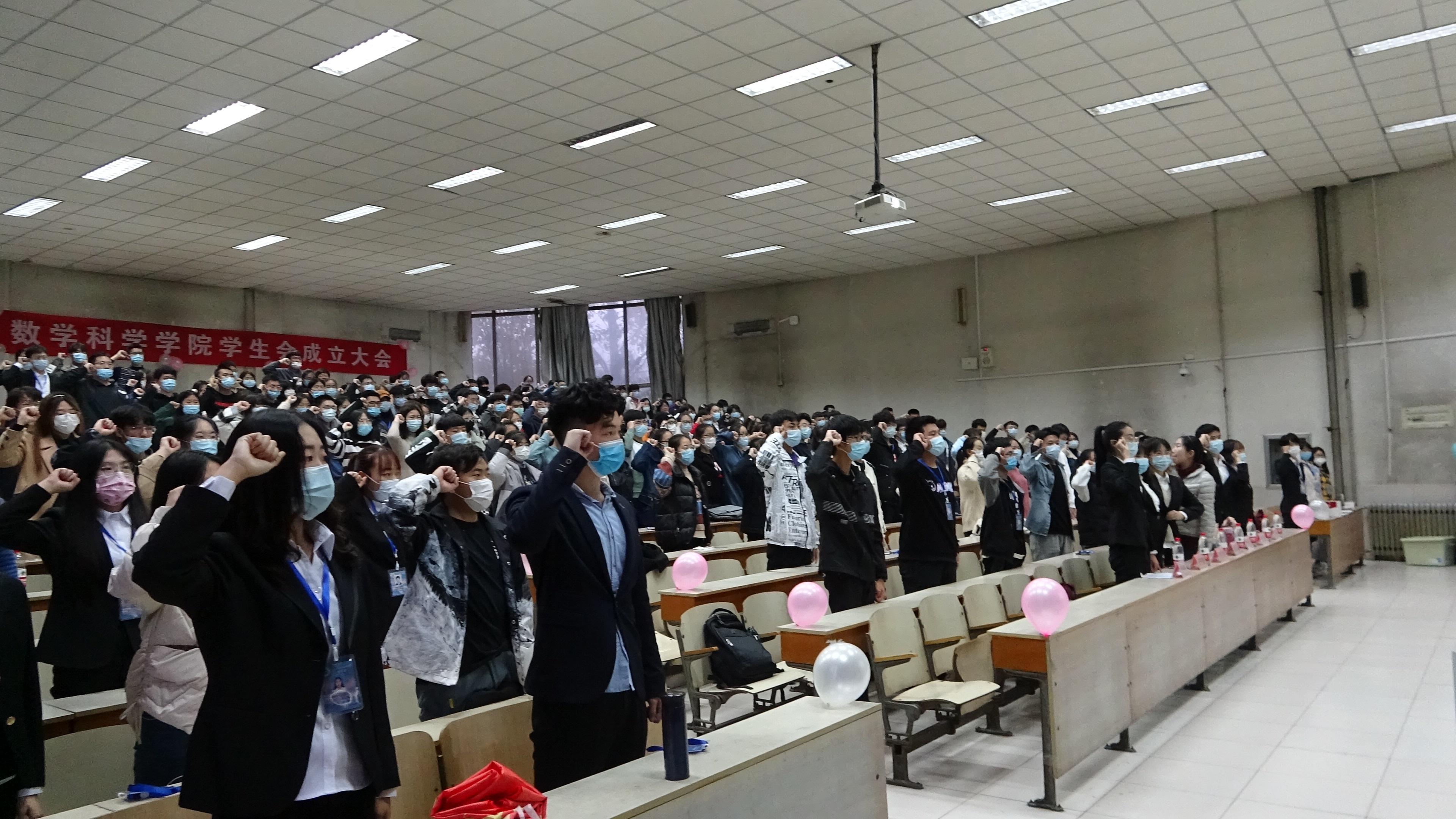 大会在主持人致开幕词、介绍嘉宾后拉开帷幕。大会伊始,第十届学生会主席团代表张咬福对新成员的加入表示热烈欢迎,并与大家分享了自己在学生会期间的工作感悟与心得,饱含对于数院新一届学生会的期许。紧接着,第十一届学生会主席李琳发言,她表示会认真、负责地做好学生会工作,继承历届学生会的优秀传统,接好接力棒。紧接着,学生会代表童谣带领学生会全体成员庄严宣誓。