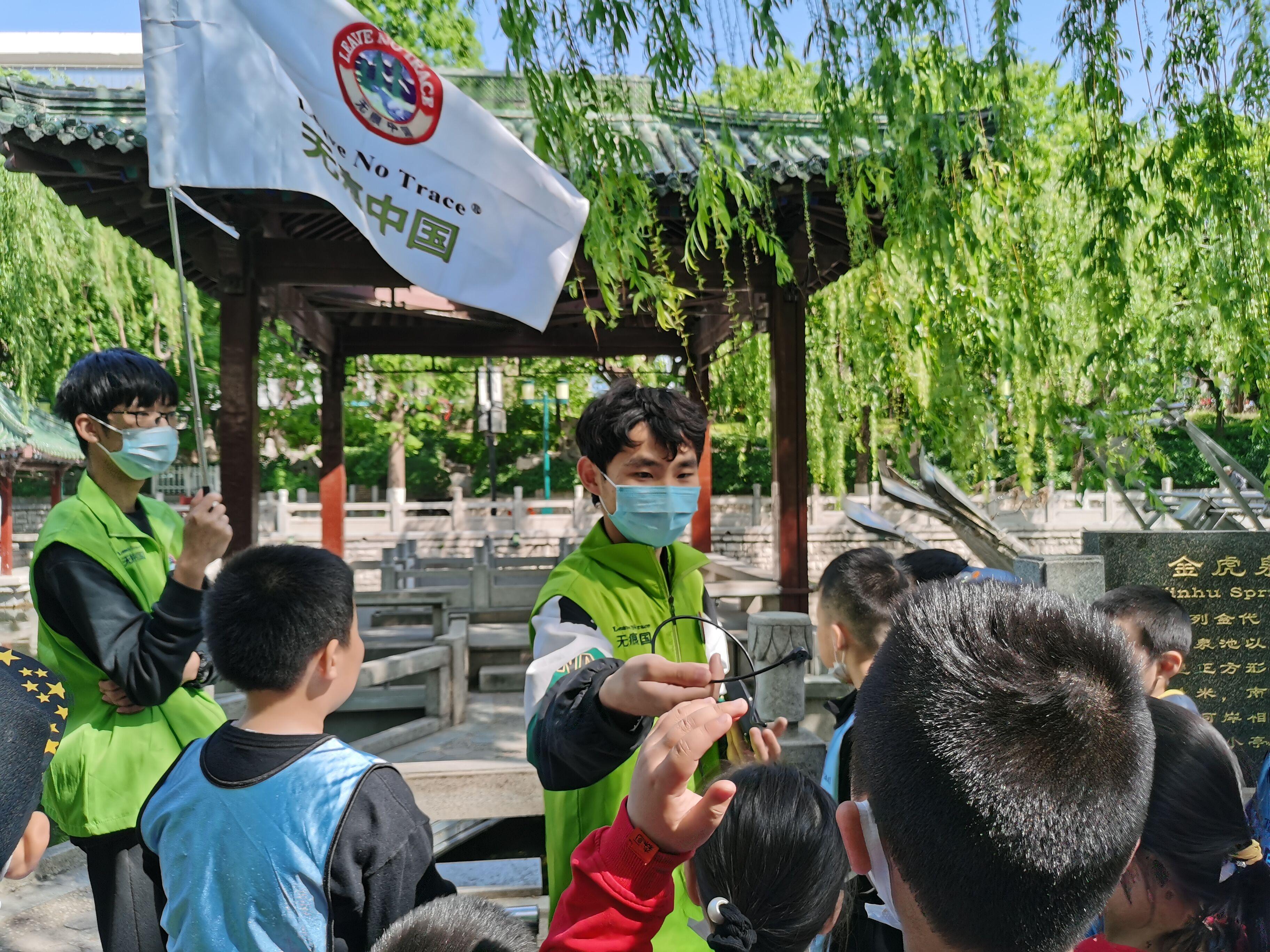 为增强大学生社会实践能力,宣传保护环境,从现在做起,从小事做起的环保理念,今年会jinnian官网青年志愿者协会与趵突泉小学2019级2班的小朋友们于4月17日9:00在济南市黑虎泉景区组织了“无痕”环境教育活动。在此次活动中,志愿者们摇身一变,成为了为小朋友耐心讲解的小讲师。