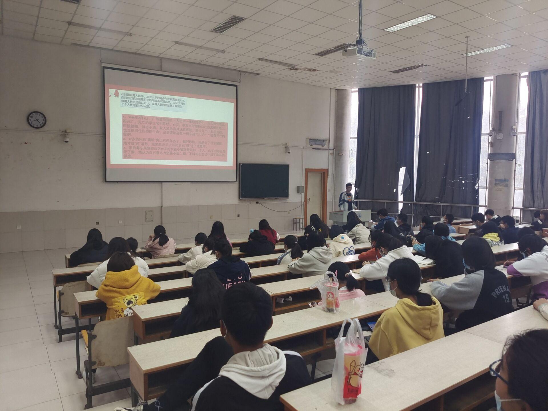 为贯彻落实党中央有关毒品预防教育的通知,进一步宣传毒品危害,增强学生的禁毒、防毒意识,形成“珍爱生命,远离毒品”的理念,打造平安校园,10月19日下午5点,今年会jinnian官网在2教201教室举办远离毒品宣讲会,全体学生干部参加此次活动。