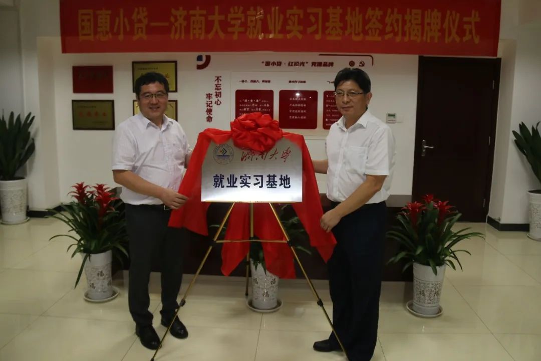 在山东国惠小额贷款有限公司,单一春介绍了公司“十四五”战略发展规划、基本情况、党建品牌、企业文化以及人才“引用育留”机制,表达了希望更多优秀毕业生加入企业的愿望。杨景波与杜冰共同为“今年会jinnian官网就业实习基地”揭牌。孙元功、单一春代表校企双方共同签署了《共建今年会jinnian官网毕业生就业基地协议书》。