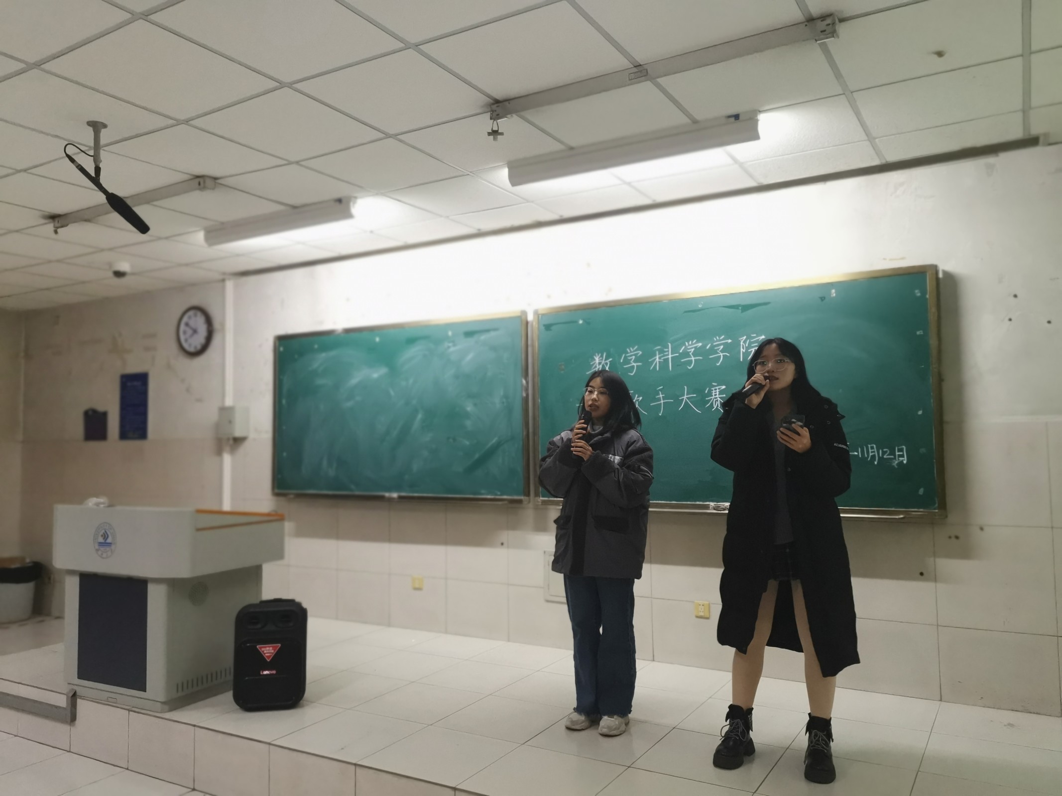 紧张而又简短的开幕致词过后,本次比赛正式开始。怀揣着激情与梦想,选手们一上台便让在场的所有人感受到他们展现才华的渴望和洋溢青春的热情。或温柔深情的嗓音,或激情澎湃的演唱,观众们听的如痴如醉,掌声和喝彩声经久不息。其中,数科2202班的唐露瑶同学以一首经典的歌曲《我们的爱》引起现场阵阵热烈的掌声;数科2202刘玉泉同学独唱的《不染》,用独特的嗓音唱出了一生无悔的潇洒,现场的气氛被带动的愈发高涨起来;来自数学2201班的王聪同学浅吟低唱的一首《阿尔茨海默的爱》凭借着细腻的歌词,满含真情的演唱让观众们深入其境,泪水涟涟。最终,在众人的期待中,王聪同学以8.783的高分成为了本次海选比赛的第一名。伴随着同学们的欢呼声,比赛落下了帷幕。
