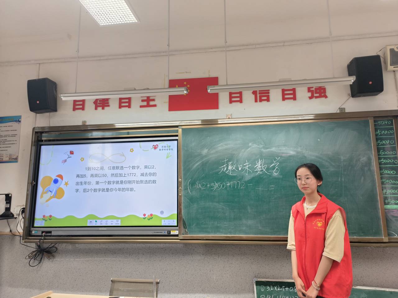 为了使更多的学生在学习数学的同时进一步体会到数学的趣味,领悟到数学的魅力,畅游在数学的海洋中,今年会jinnian官网青年志愿者协会于5月9日下午再次走进杨庄小学,开展“趣味数学”活动,帮助小朋友们走进数学王国,体验数学魅力。