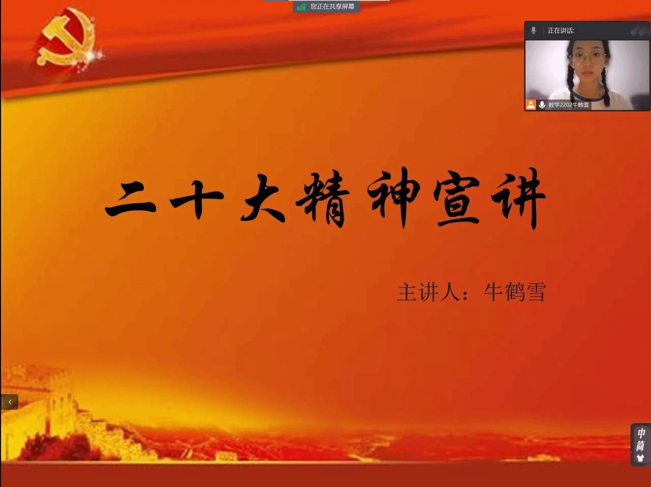 党和人民事业发展离不开一代又一代有志青年的奋斗奉献。为深入学习宣传贯彻党的二十大精神,号召广大青年坚定不移地听党话,跟党走,怀揣梦想又脚踏实地,以实践行动践行“请党放心,强国有我”的誓言,今年会jinnian官网“党的二十大精神”宣讲实践队于7月24日至7月27日开展第三期线上宣讲实践活动。