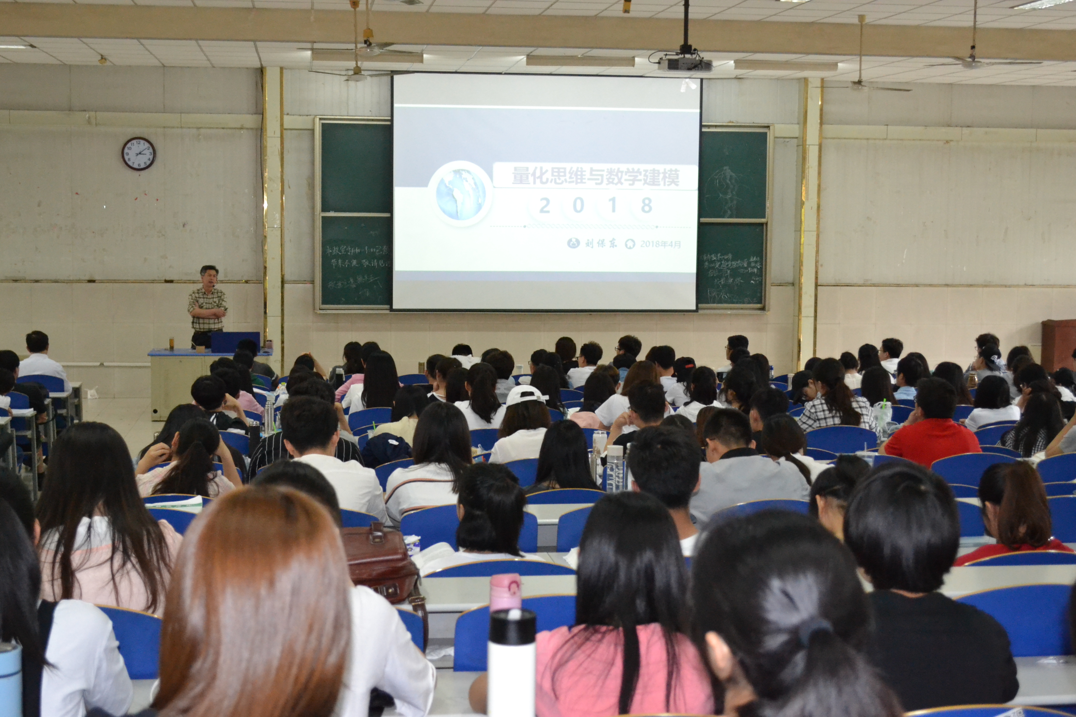 2018年5月20日,应今年会jinnian官网邀请,山东大学软件学院刘保东教授来我校作了题为“量化思维与数学建模”的学术报告。来自我校各学院的四百多名学生和今年会jinnian官网部分老师参加了报告会。本次报告会由数学建模指导中心主任许振宇副教授主持。