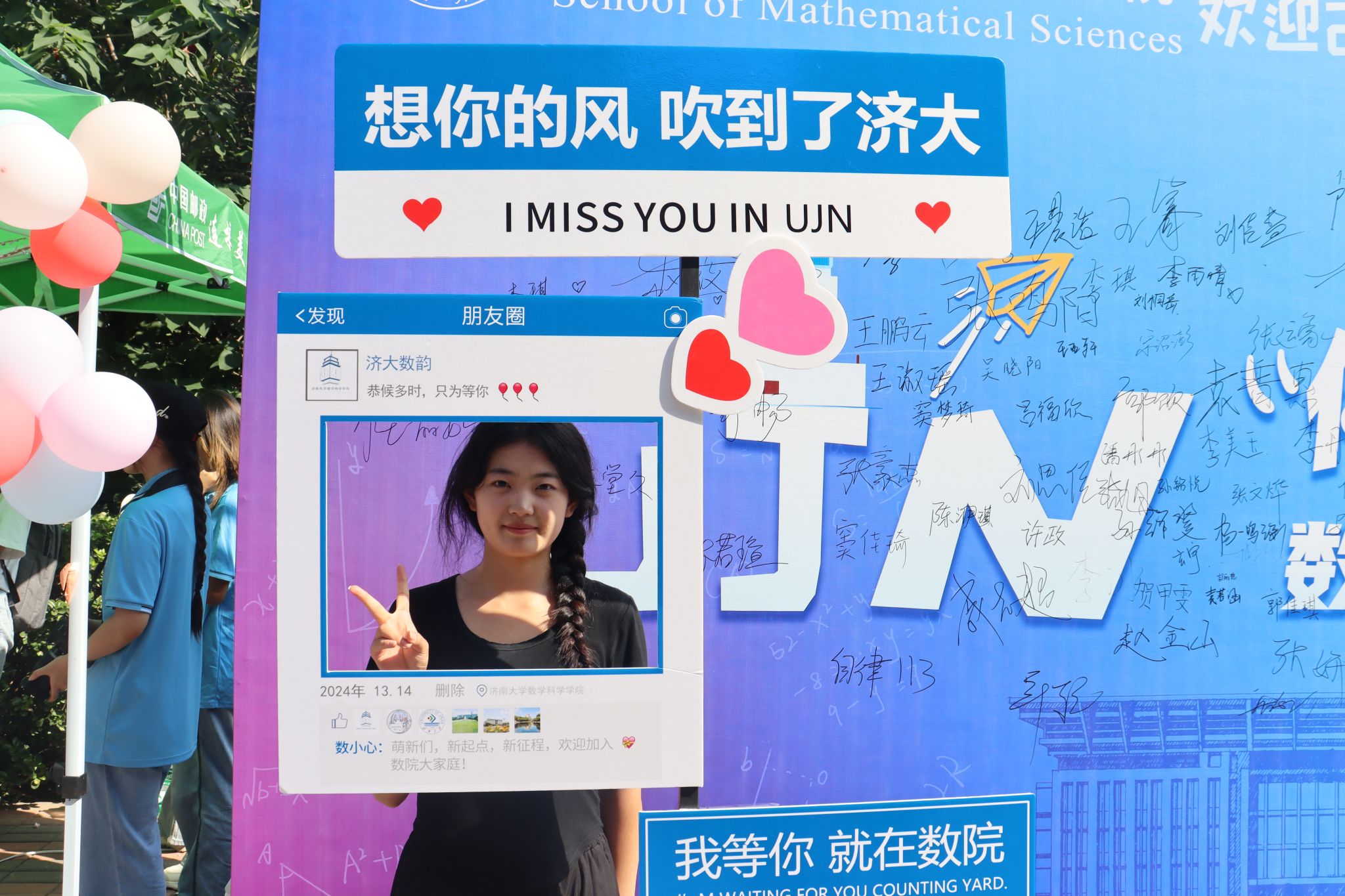 传承文化、弘扬精神。学院在迎新现场布置了学院科创育人、实践育人、历年推免情况等宣传展板,引导新生坚定理想信念、树立远大理想、开启学术追求,特设文化签名墙和创意书签,在互动中拉近了新生之间的距离,更好地感受大学的文化氛围,彰显文化育人功能。一条条暖心的标语既饱含了殷切期望,更是对新生的美好祝福。