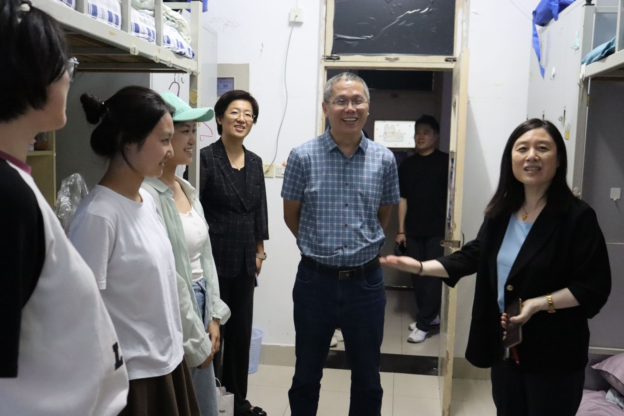 学院领导、老师深入新生宿舍,与新生亲切交流,仔细询问新生们对新环境的适应情况,详细了解学生家庭、学习和生活等情况,耐心倾听他们的困惑,鼓励大家积极融入大学生活、珍惜大学生活,勇敢追逐梦想,勤奋好学,奋力拼搏。让新生们感受到了今年会jinnian官网这个大家庭的温暖与关怀。