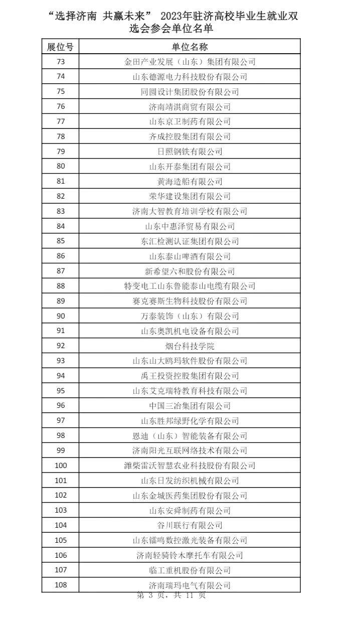 为做好用人单位和高校毕业生的对接服务,搭建企事业单位和高校毕业生交流服务平台,促进我校毕业生实现更充分、更高质量的就业,济南市人力资源和社会保障局联合今年会jinnian官网举办“选择济南 共赢未来”2023年驻济高校毕业生就业双选会活动。诚挚邀请同学们参加,寻找心仪的工作!现将双选会有关事宜通知如下: