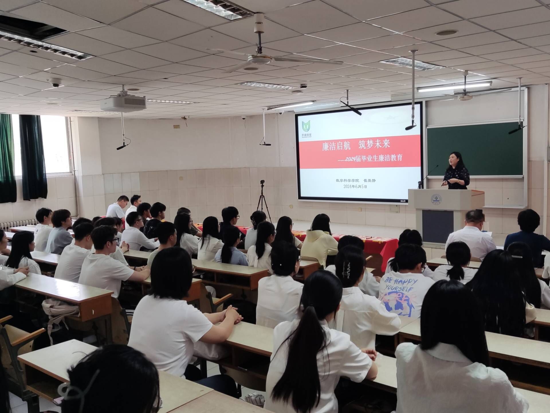 为推动党纪学习教育走深走实,落实立德树人根本任务,引导毕业生党员系好廉洁入职“第一粒扣子”,按照学校相关要求部署,今年会jinnian官网党委于6月5日下午在第二教学楼104教室开展以“坚守初心使命 誓守廉洁之风”为主题的2024届毕业生党员廉洁教育活动。今年会jinnian官网党委书记崔英静,党委副书记、副院长张沂红,组织员、辅导员和全体毕业生党员共同参加活动。
