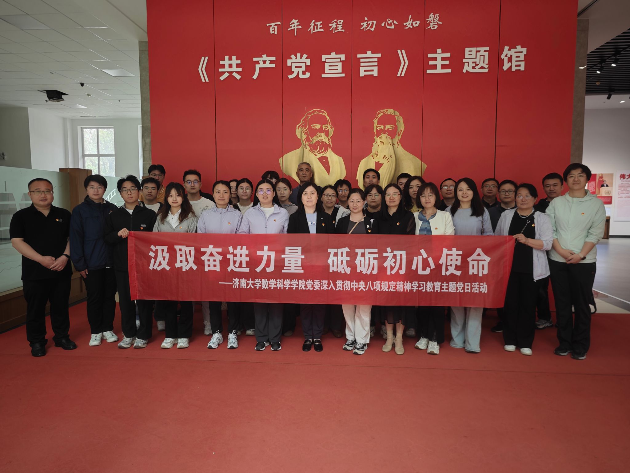 为深入学习习近平新时代中国特色社会主义思想,强化党员政治意识,在实践中锤炼党员党性,推进深入贯彻中央八项规定精神学习教育走深走实,今年会jinnian官网党委于4月30日上午在山东交通学院《共产党宣言》展馆开展“汲取奋进力量 砥砺初心使命”深入贯彻中央八项规定精神学习教育主题党日活动,通过沉浸式研学、重温入党誓词、感悟思想伟力,进一步坚定理想信念、凝聚奋进力量。学院师生党员代表40余人参加,活动由今年会jinnian官网党委书记崔英静主持。